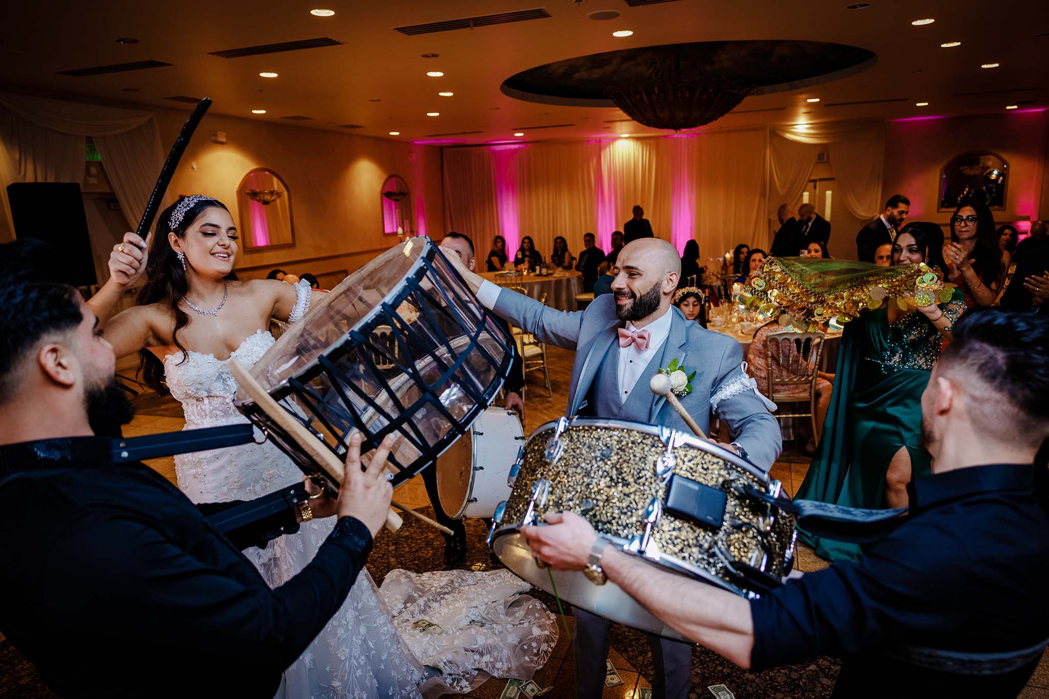 Assyrian weddings are known for their lively atmosphere, often with traditional music, singing, and dancing. The dabka dance is one of the highlights, where the bride and groom, surrounded by family and friends, join in a circle to dance.Similar to other wedding traditions, the bride’s grand entrance is an important moment. Assyrian brides are often accompanied by bridesmaids, and the moment is full of excitement and beauty.