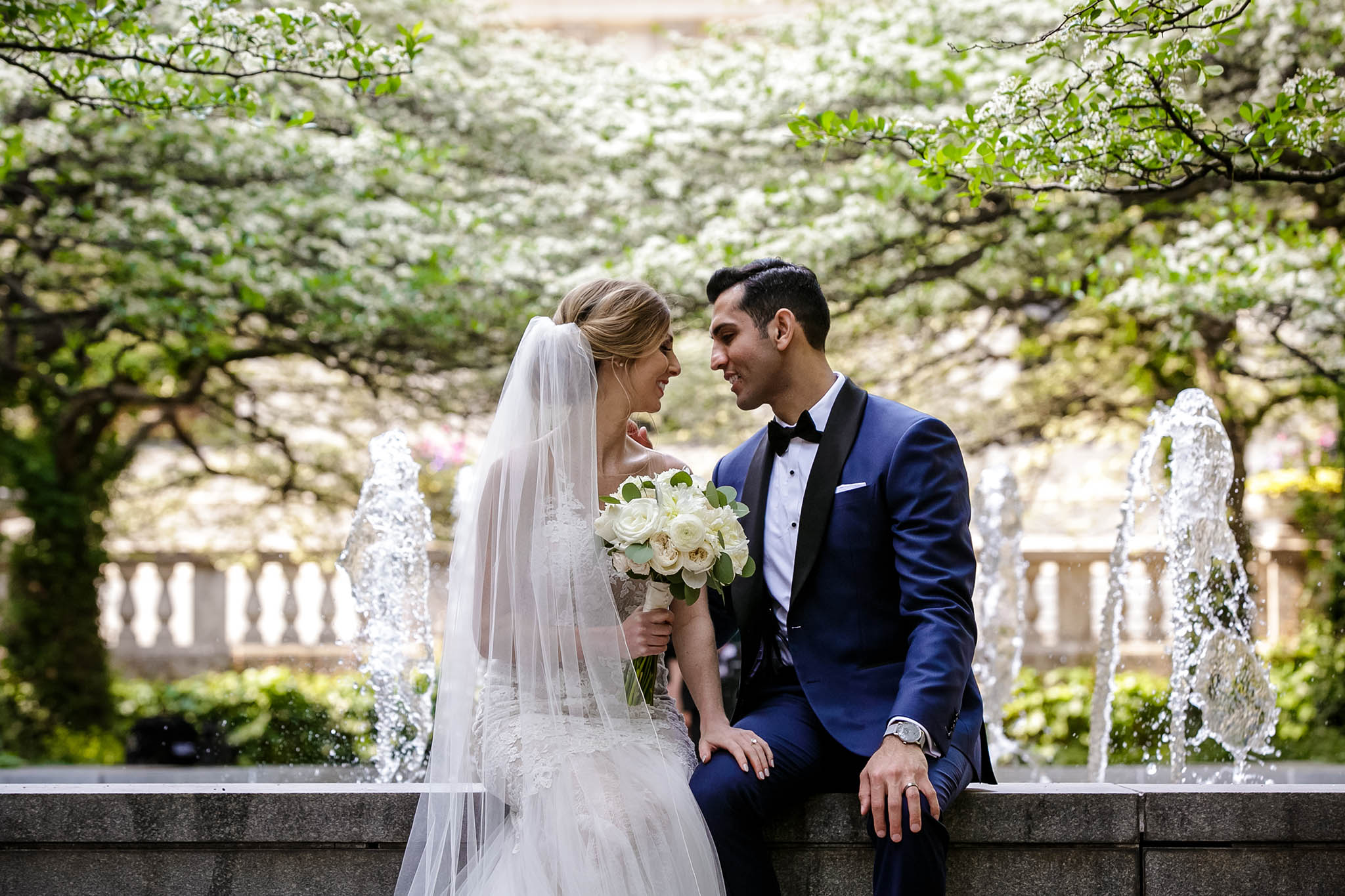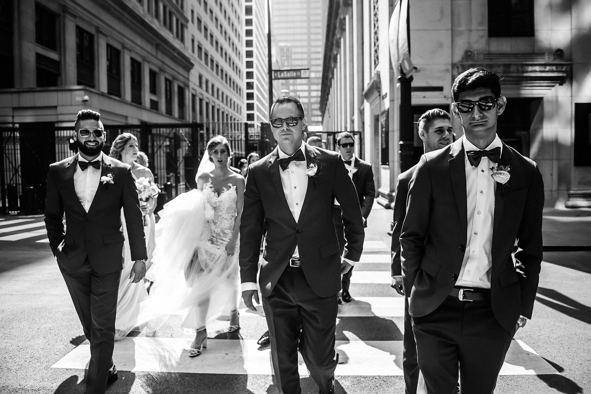 We made some really great classic Chicago wedding photos around Chicago Board of Trade and South Garden of the Art Institute.