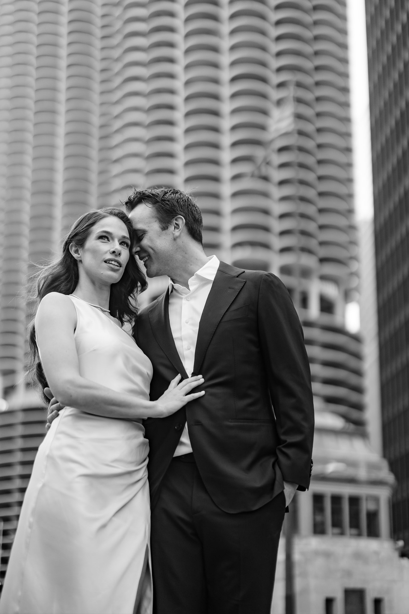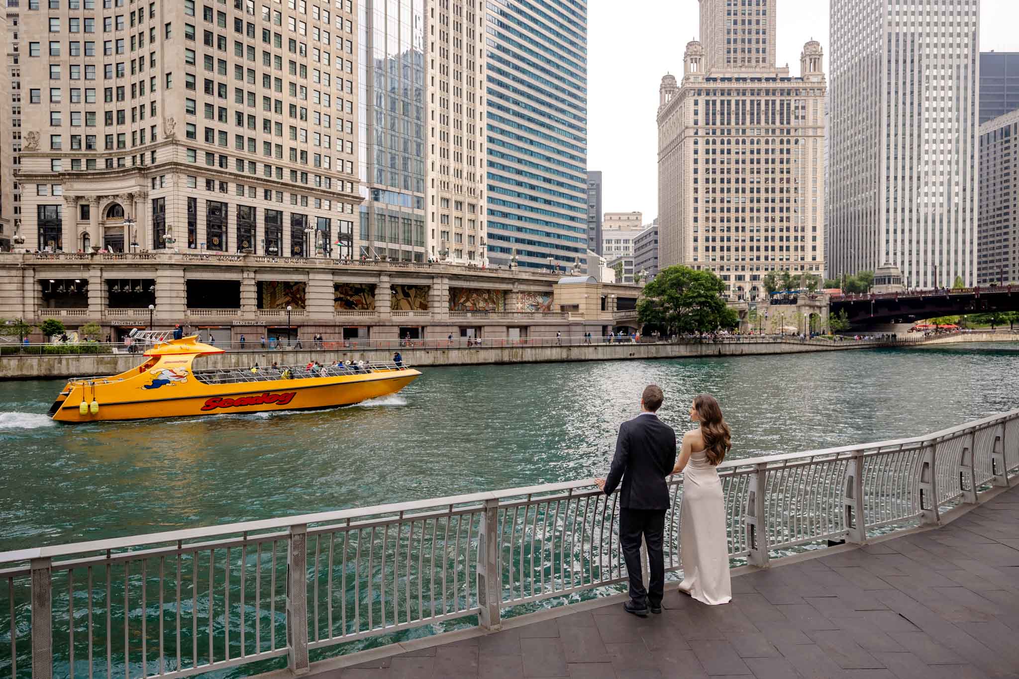 Chicago engagement photos like the ones with Taryn and Brett can truly be described as perfect. You can see all the beauty of Chicago—so much diversity in one place. That’s exactly what we captured here. We had been planning the engagement session with Taryn for a long time and had to reschedule several times due to bad weather and rain. In the end, it turned out to be a perfect day for the session. We chose the very heart of the city and walked to several locations around the river. Taryn is super laid-back and wanted everything — lots of photos and variety. A wonderful couple, and it was truly easy working with them. They’re moving away from Chicago, a city they truly love, and wanted to have as many iconic photos as possible to always remind them of their life here.
