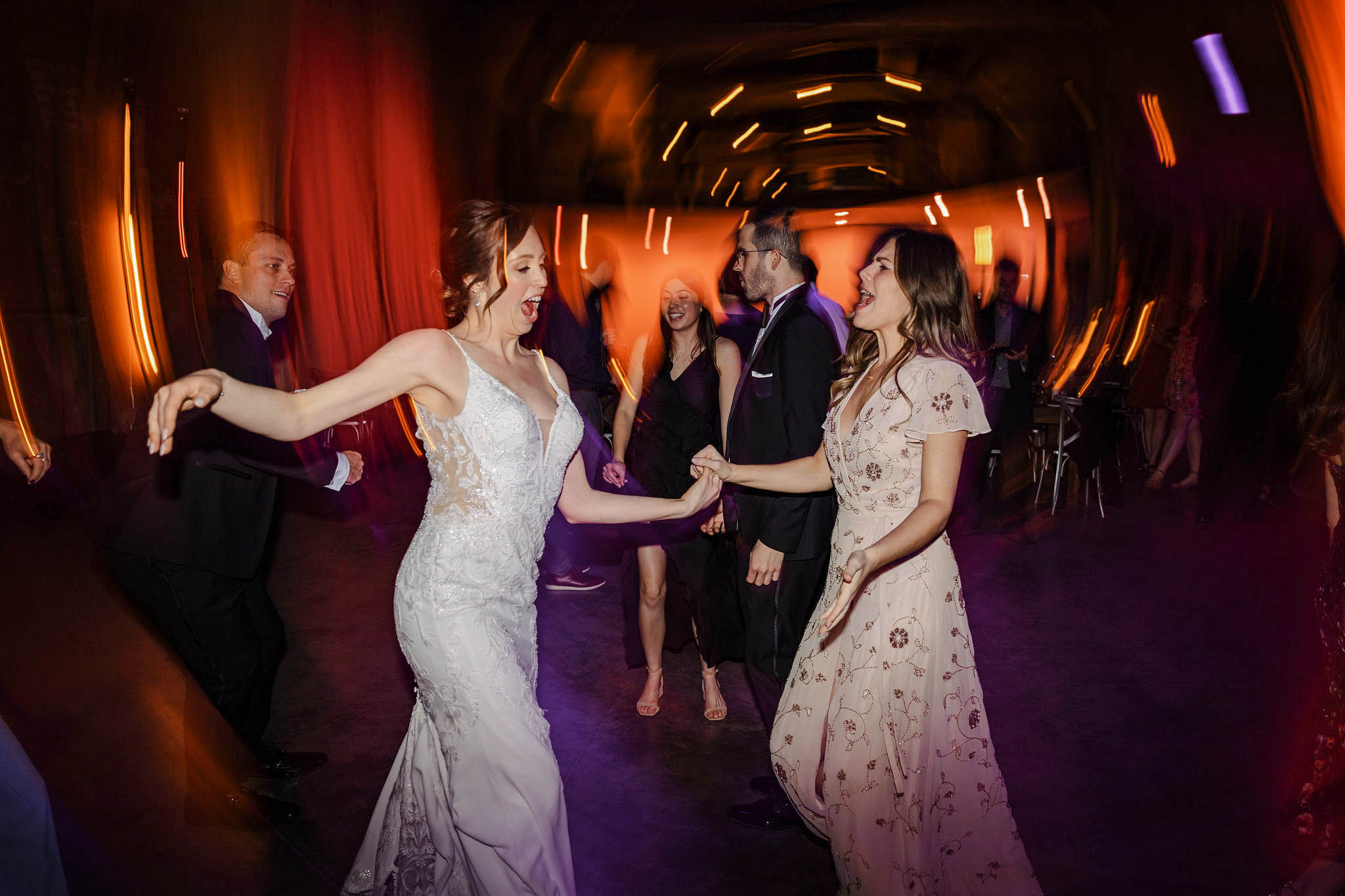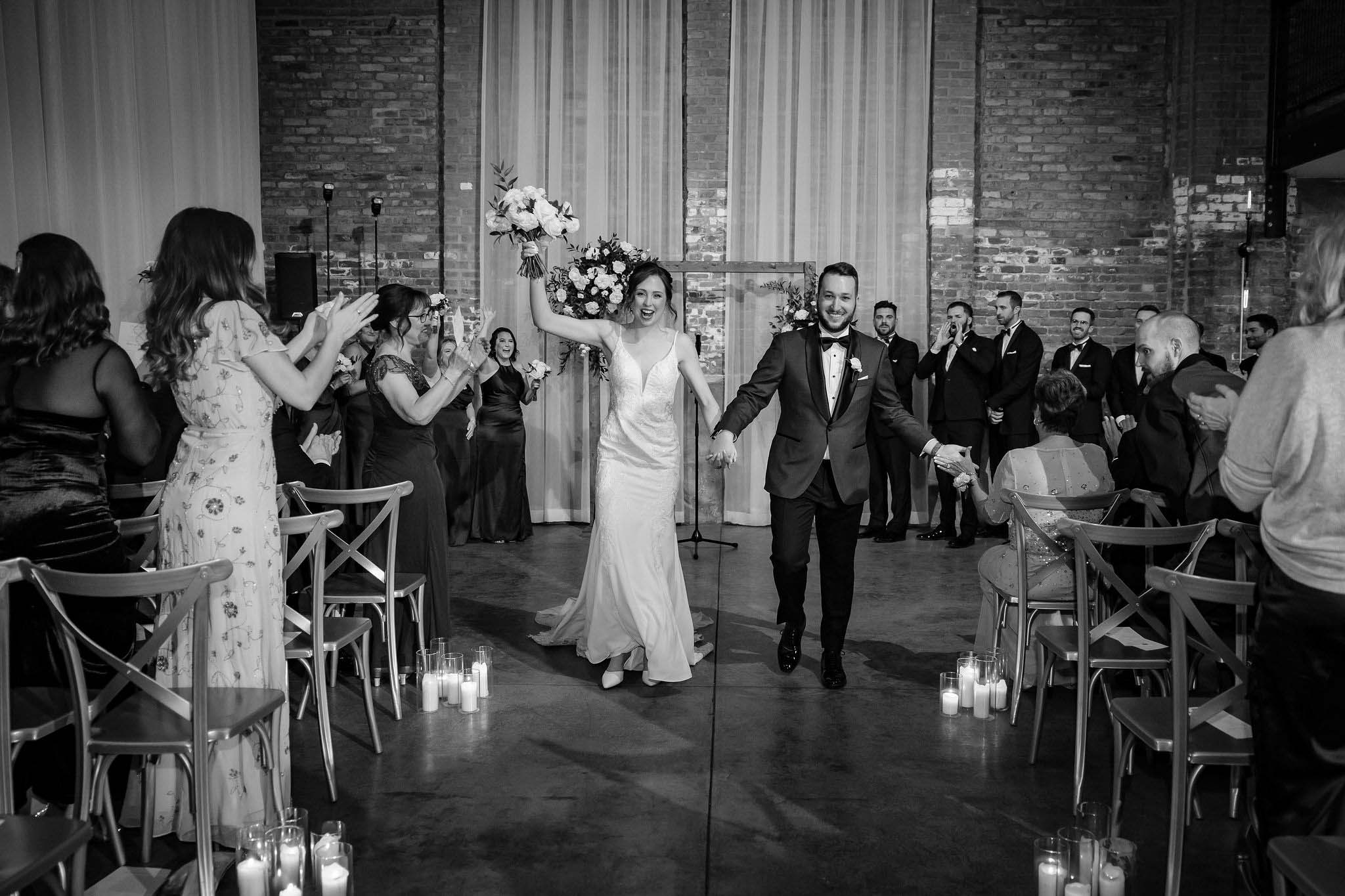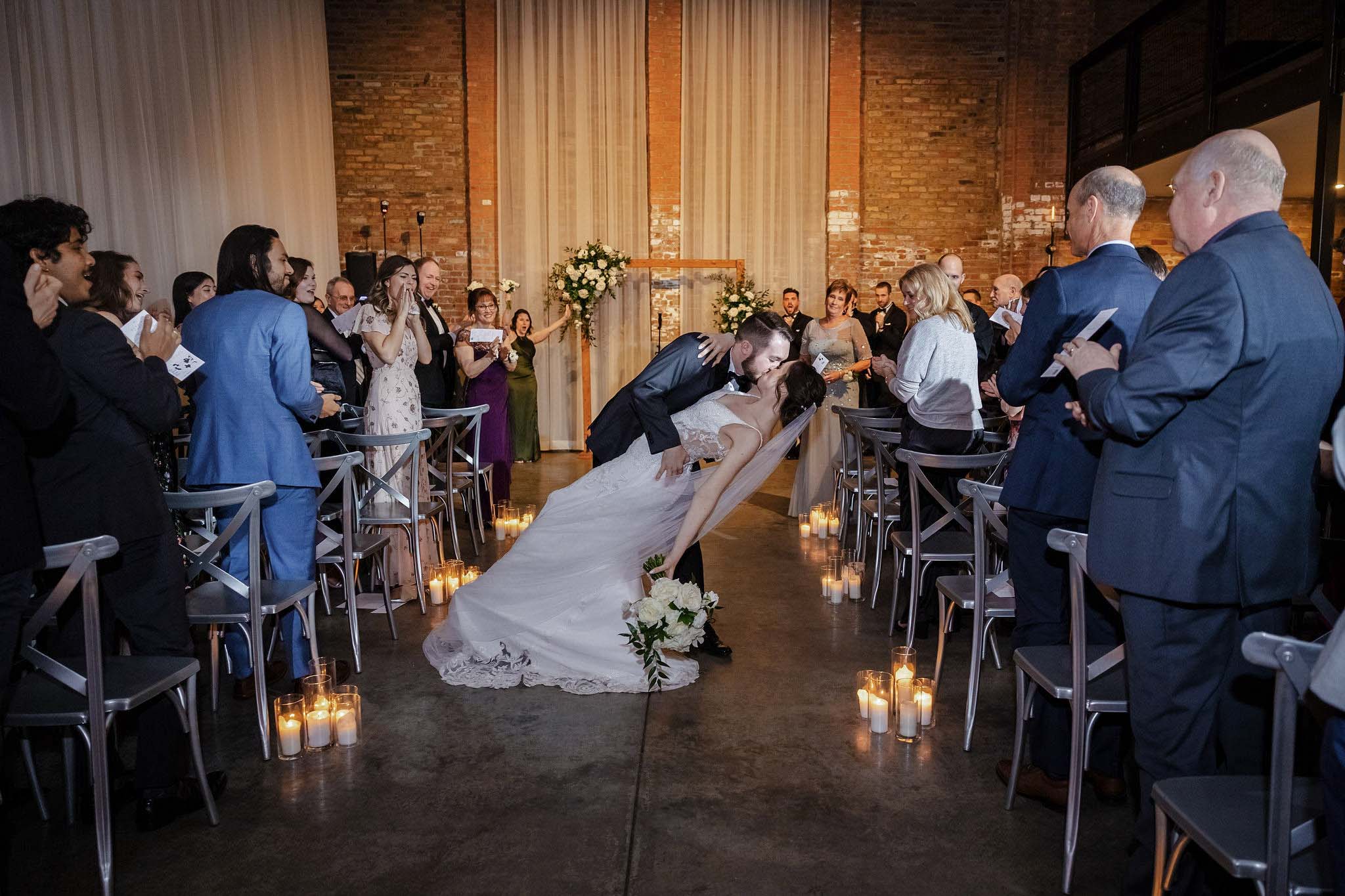 Fairlie is a relatively new event space located in the industrial area just behind the Fulton Market District. The neighborhood has seen a rise in new venues recently, and Fairlie fits right in with its industrial design—brick walls and iron details. One practical advantage is that it has its own large parking lot. Allison and Aaron chose to have everything in one place, something Fairlie easily accommodates. That decision made the whole day feel more relaxed, with less time spent in transit and more time to enjoy the moments. A big part of the work was handled by the team of planners from Ohana Events. Everything went according to plan. There were so many details, and the couple truly put in a lot of effort to make sure everything was perfect. The ceremony was very emotional, with several speakers adding personal and touching moments. After the ceremony, guests moved on to cocktail hour while the team at Fairlie worked on setting up the space for the reception. The venue is spacious and well-suited for large celebrations, but from a photographer’s perspective, it’s quite challenging—it’s a very dark space and requires a strong command of additional lighting techniques to capture it well.Since that’s our specialty, you can see the results clearly in the photos in the gallery. After dinner, the live band—Bluewater Kings Band—took the stage, and they were absolutely fantastic. In our experience, a live band is always the best choice for wedding music. It may be more demanding and more expensive, but it’s truly worth it. And then—the party really started!