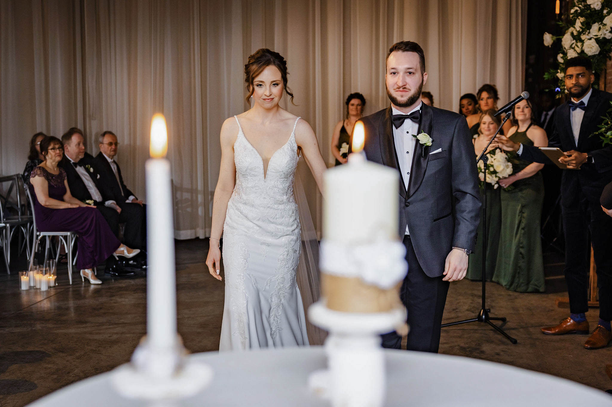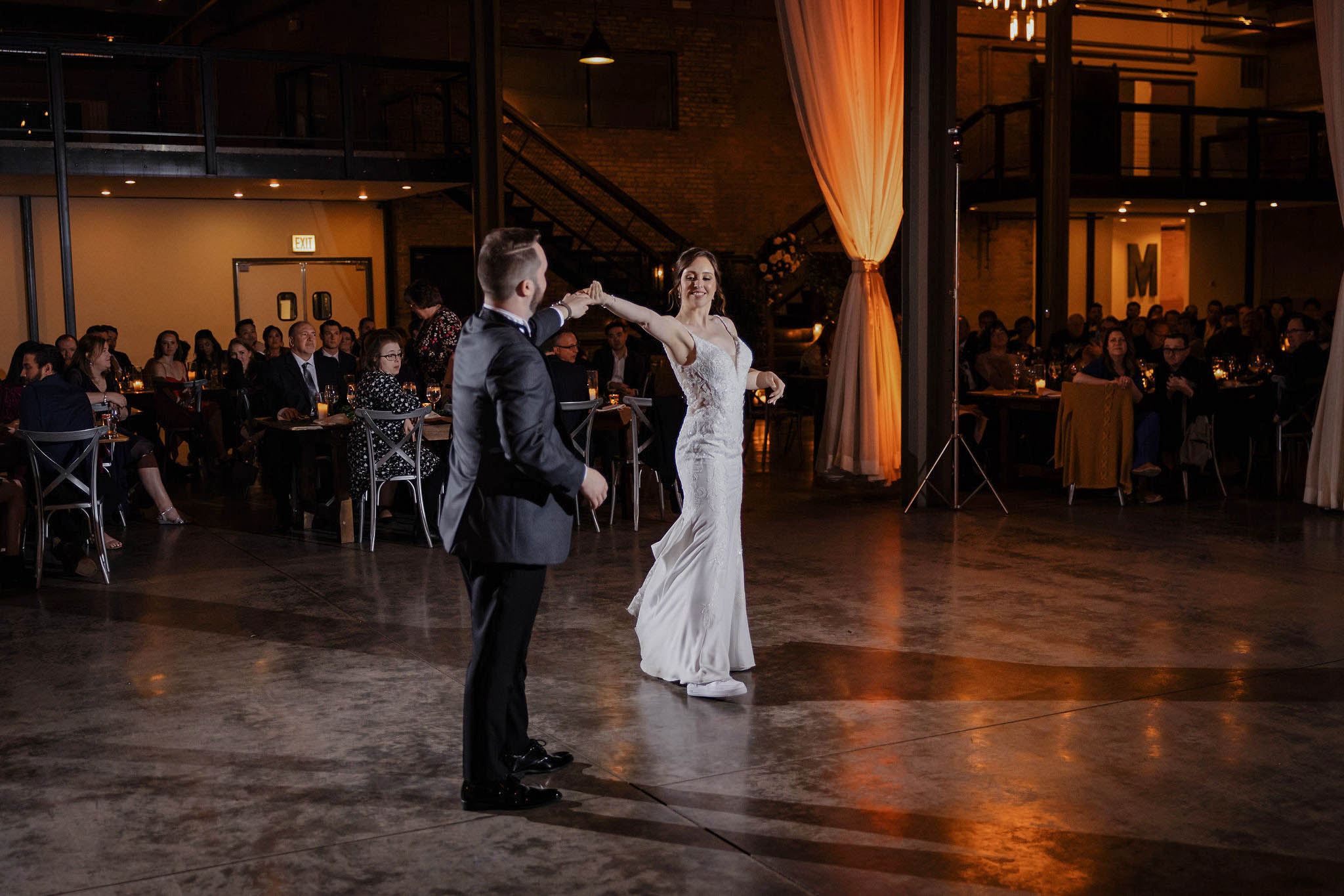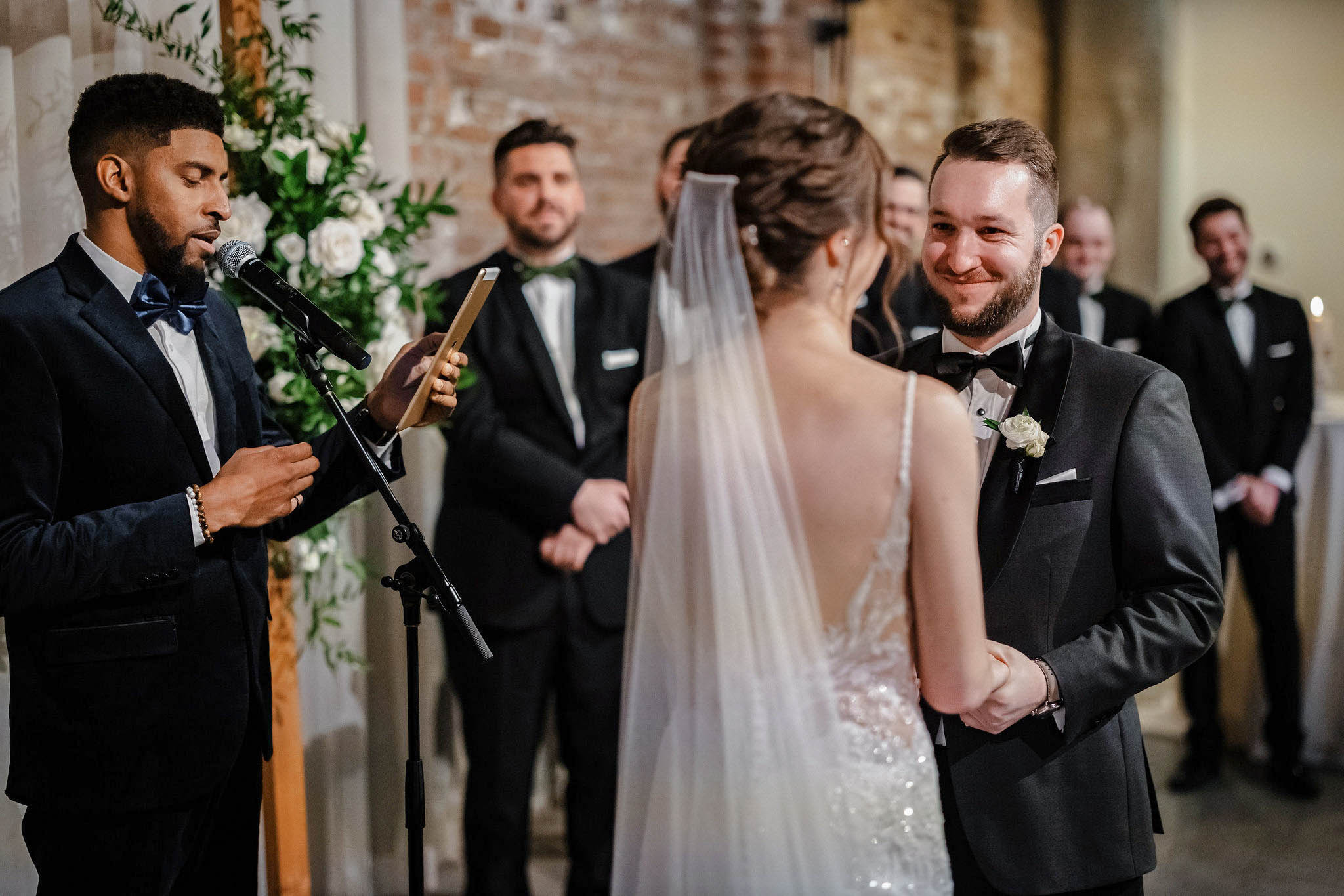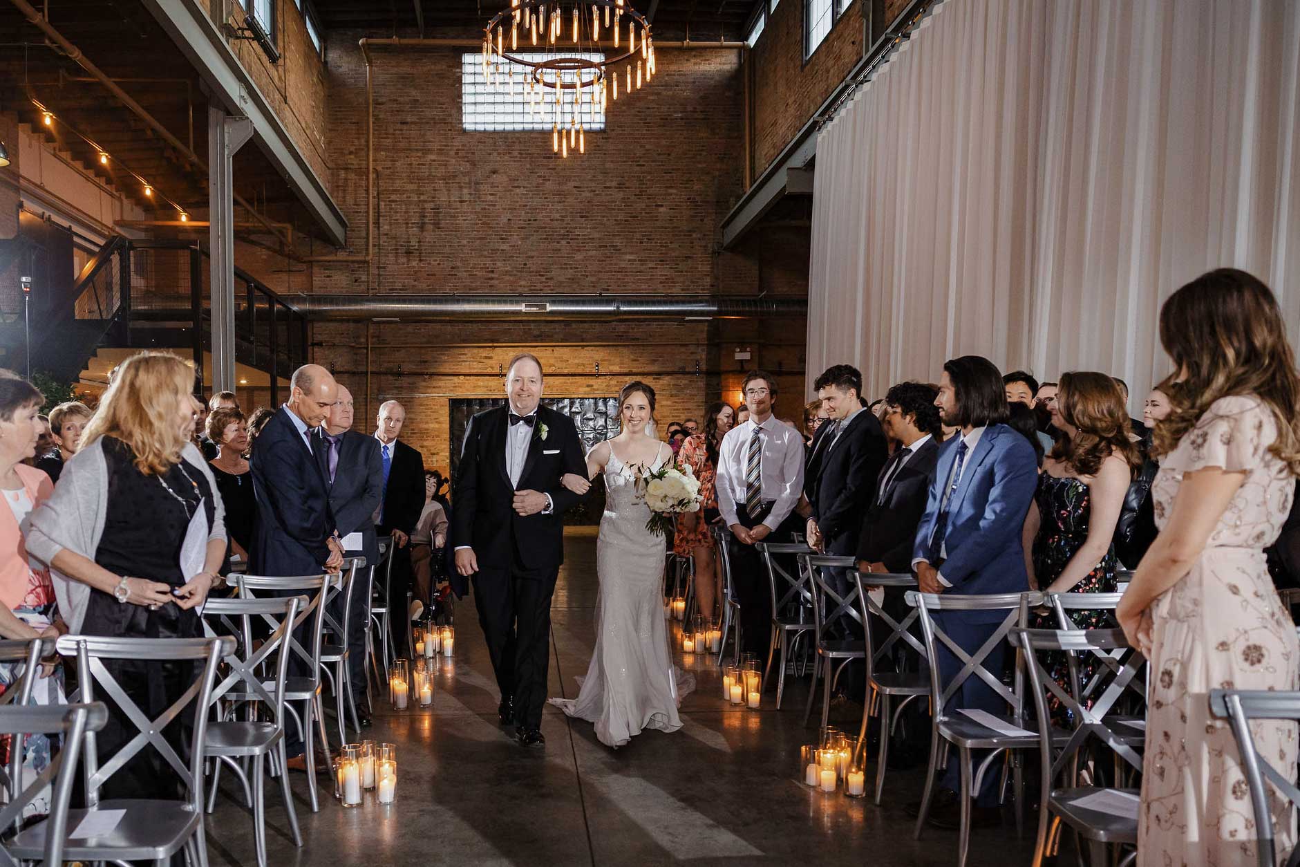 Fairlie is a relatively new event space located in the industrial area just behind the Fulton Market District. The neighborhood has seen a rise in new venues recently, and Fairlie fits right in with its industrial design—brick walls and iron details. One practical advantage is that it has its own large parking lot. Allison and Aaron chose to have everything in one place, something Fairlie easily accommodates. That decision made the whole day feel more relaxed, with less time spent in transit and more time to enjoy the moments. A big part of the work was handled by the team of planners from Ohana Events. Everything went according to plan. There were so many details, and the couple truly put in a lot of effort to make sure everything was perfect. The ceremony was very emotional, with several speakers adding personal and touching moments. After the ceremony, guests moved on to cocktail hour while the team at Fairlie worked on setting up the space for the reception. The venue is spacious and well-suited for large celebrations, but from a photographer’s perspective, it’s quite challenging—it’s a very dark space and requires a strong command of additional lighting techniques to capture it well.Since that’s our specialty, you can see the results clearly in the photos in the gallery. After dinner, the live band—Bluewater Kings Band—took the stage, and they were absolutely fantastic. In our experience, a live band is always the best choice for wedding music. It may be more demanding and more expensive, but it’s truly worth it. And then—the party really started!