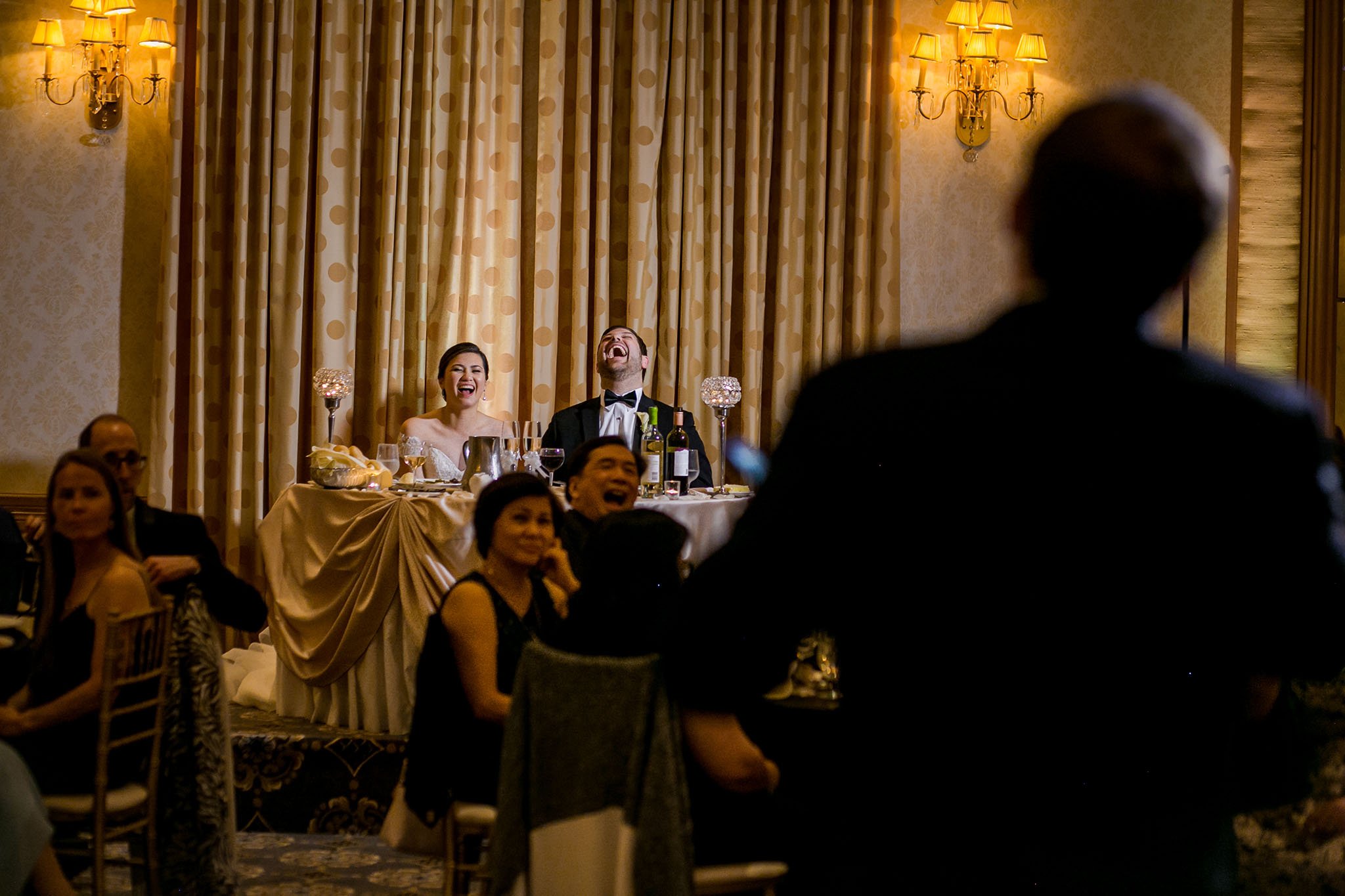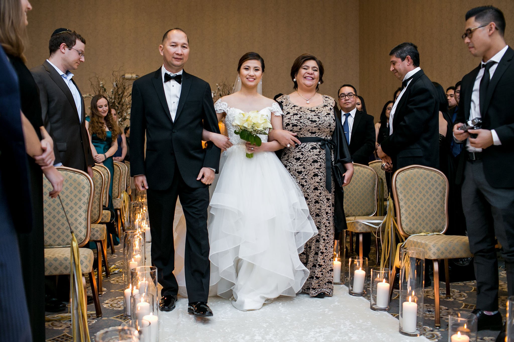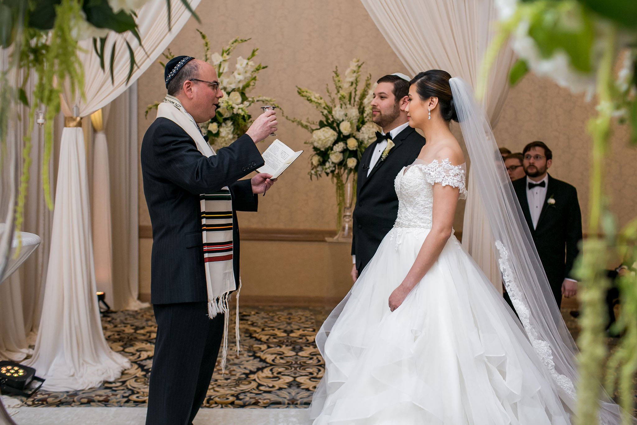 Afterwards we hit the road to The Renaissance Schaumburg Center Hotel . There the Jewish wedding ceremony was held. It was beautiful to see Ana, who is of Filipino origins and Ross participate in the Jewish wedding ceremony surrounded by their families and closest friends. Of course no Jewish wedding is complete without the Hora, or chair dance. As the tradition demands, a few strong and brave guests hoisted the bride and groom high above the crowd on chairs to the infectious sounds of Hava Nagila. Friends and family danced around in an ecstatic circle as the elevated couple tried not to fall down.