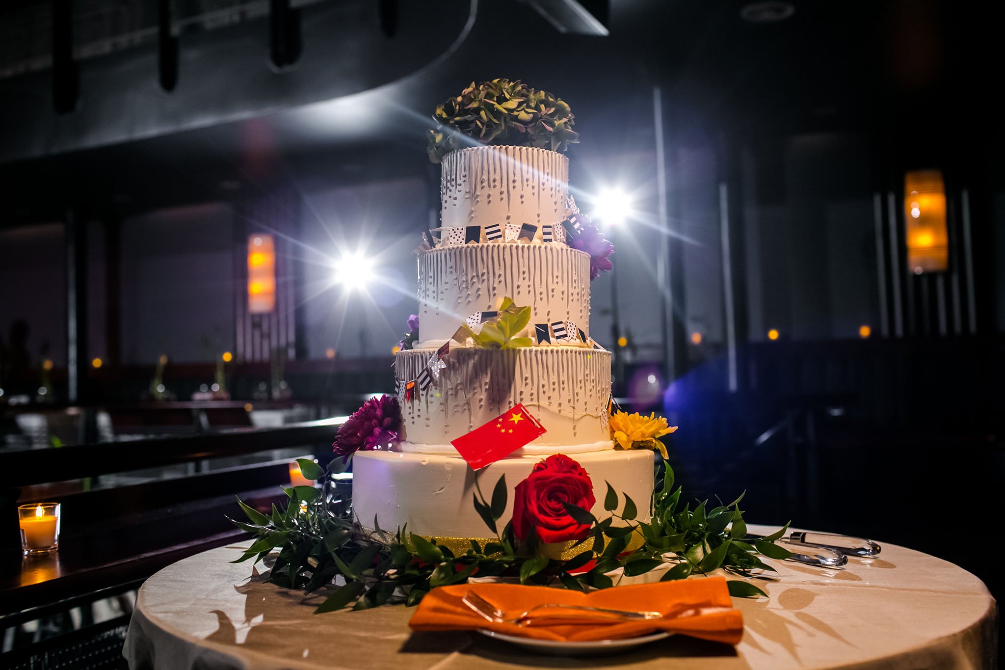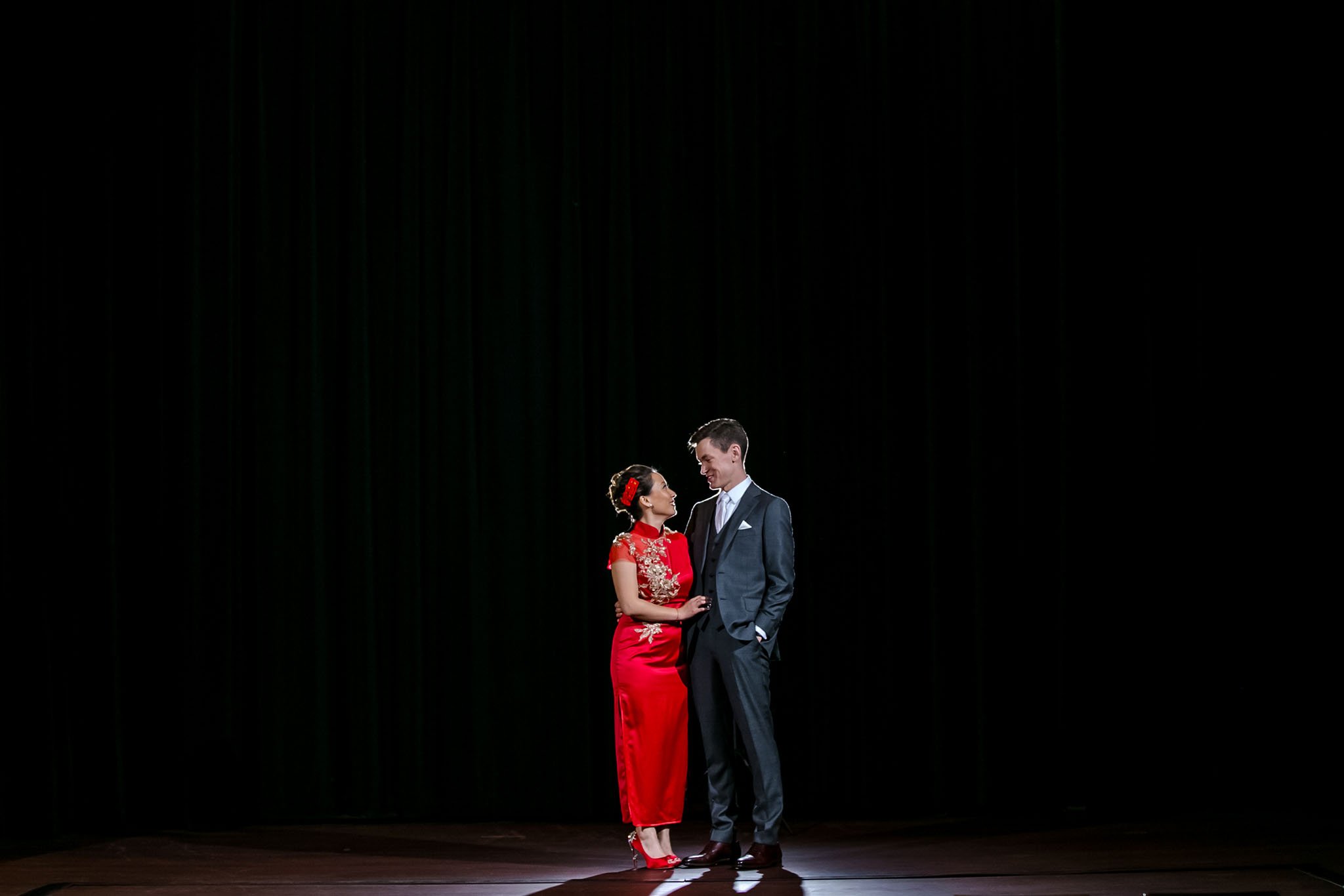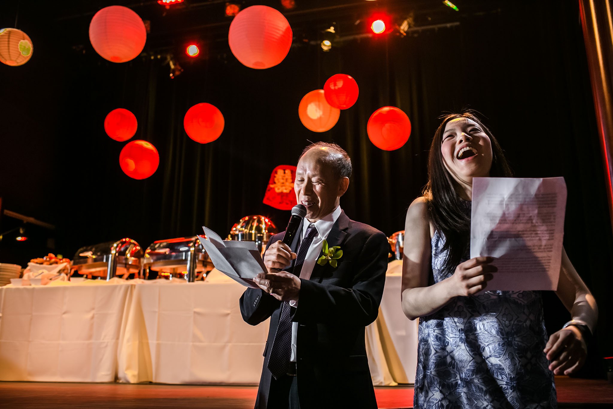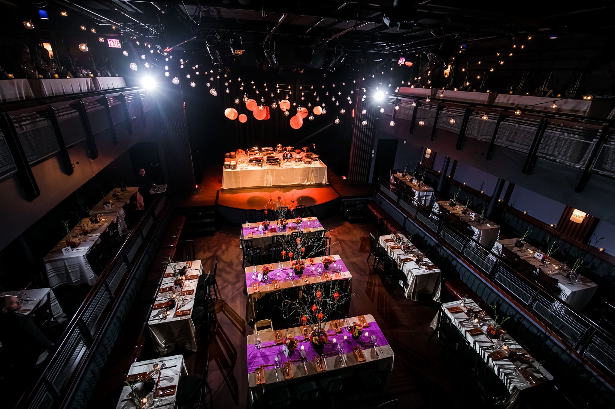 For their wedding Lei and Jason chose Mayne Stage. Mayne Stage is a beautiful space established in 1912 as a theater. It features performing stage and lounge and it really is a very unique choice of the wedding venue! It is also very challenging for photographers because it is very dark and not your typical wedding venue. Photos of this wedding are featured on Partyslate website.
