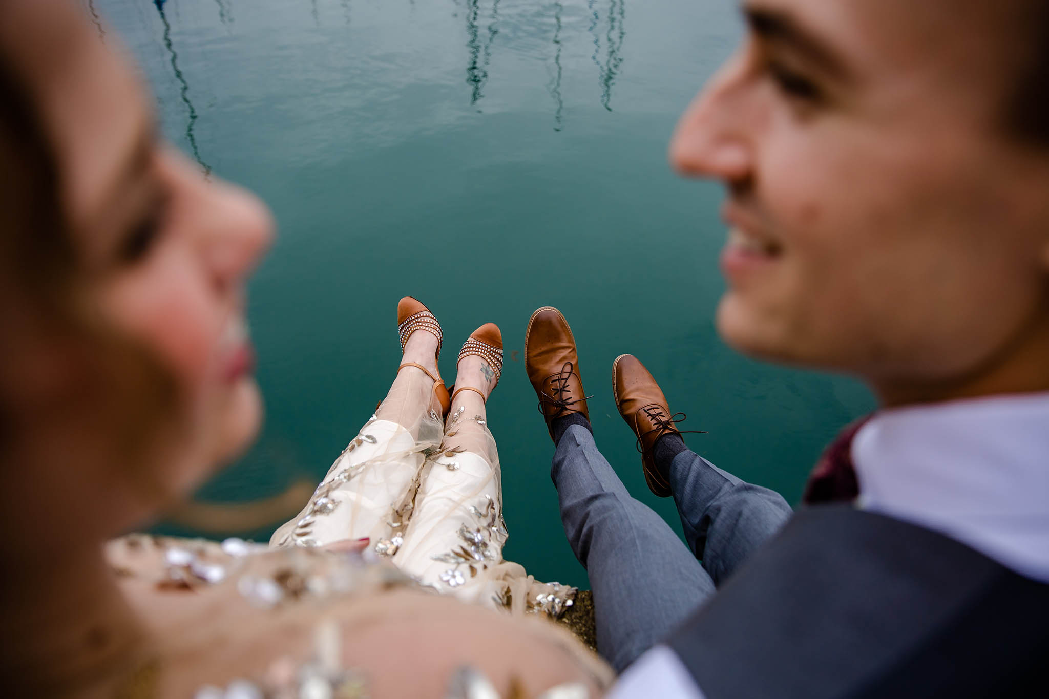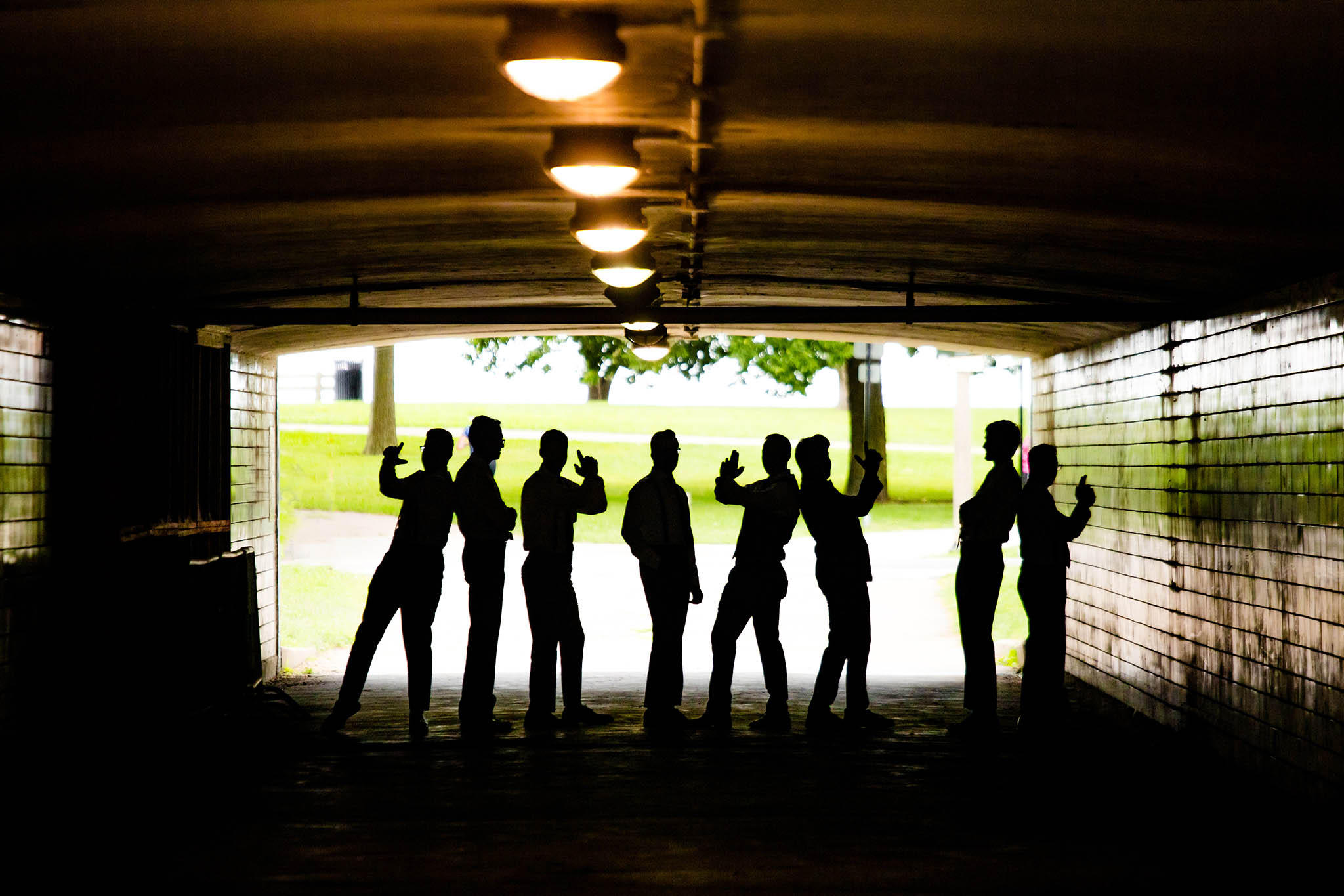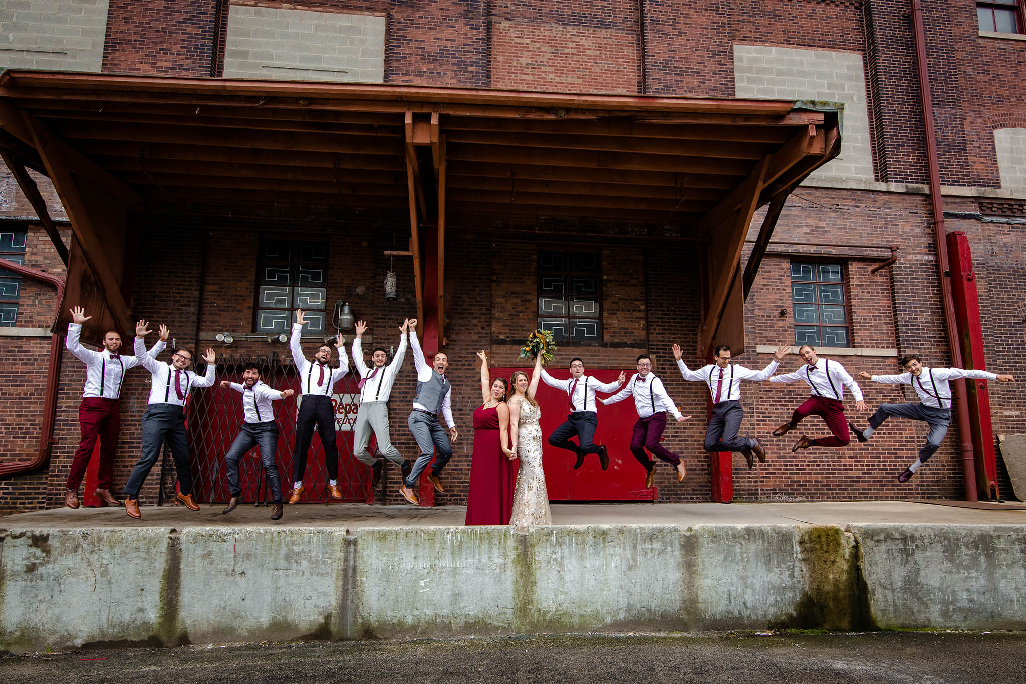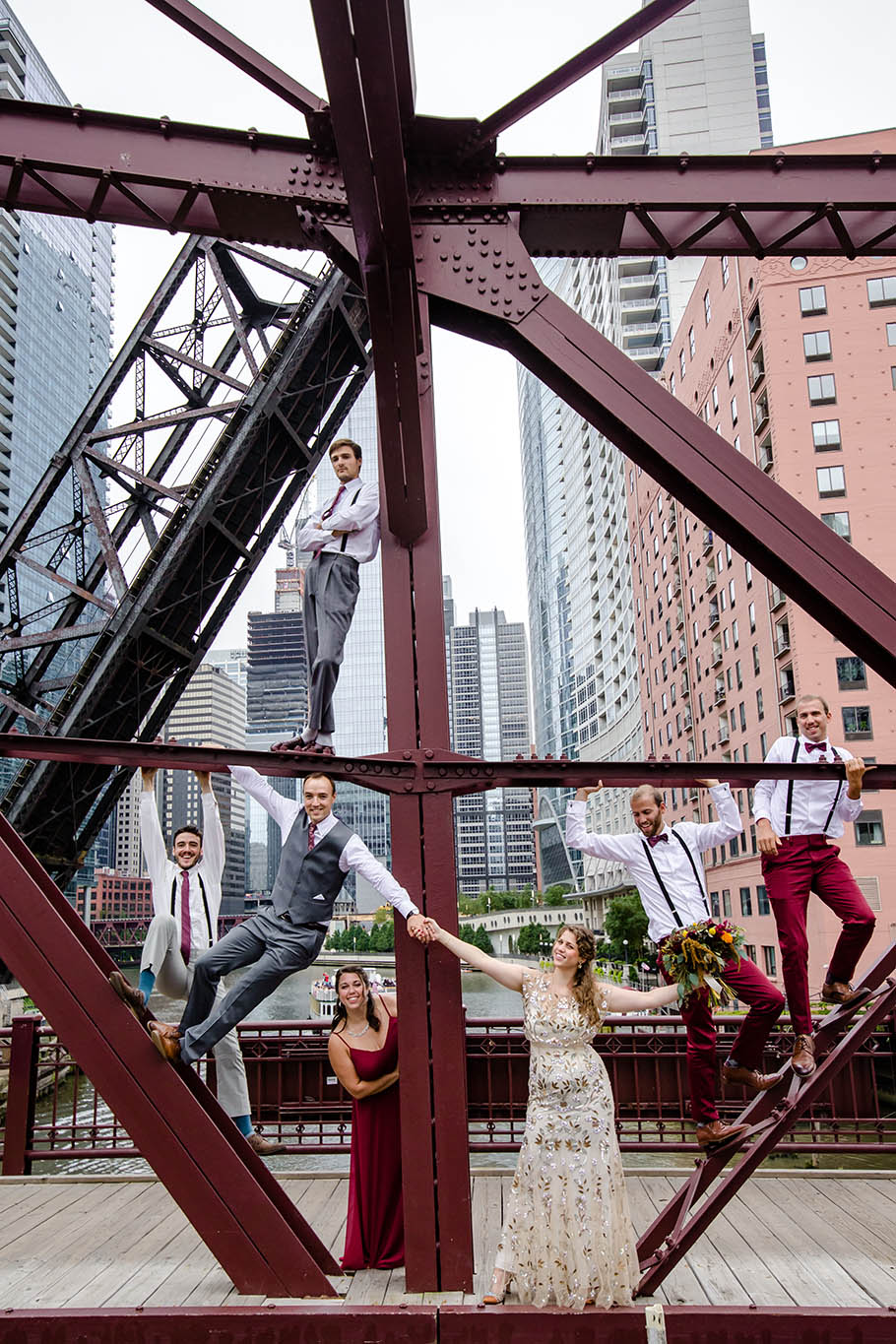 After the first look in their courtyard we all headed to Montrose bird sanctuary for some wedding party photos. Even with a light rain, it is still a great photo location. No one seemed to be bothered much with the weather and they all continued to be playful. Our second location was Kinsey Street bridge where the groom and his brothers showed off their acrobatic and climbing skills. We were impressed!