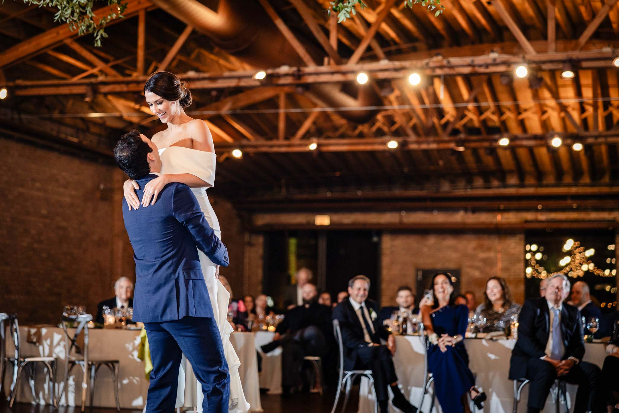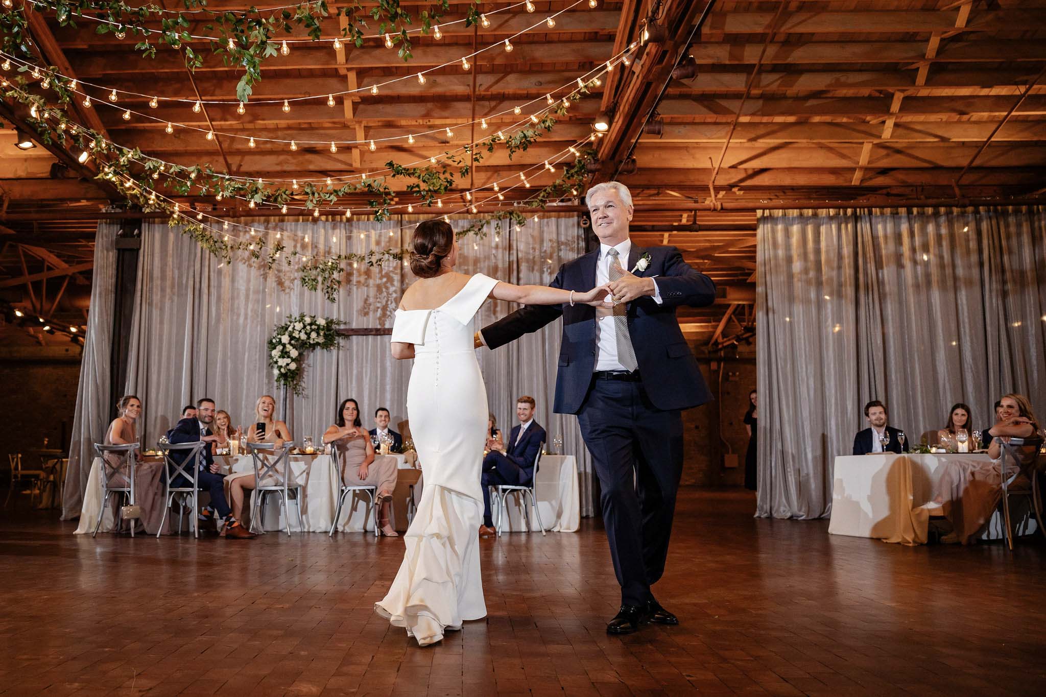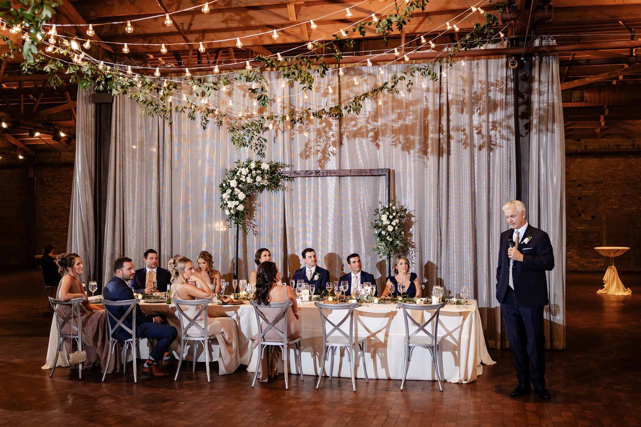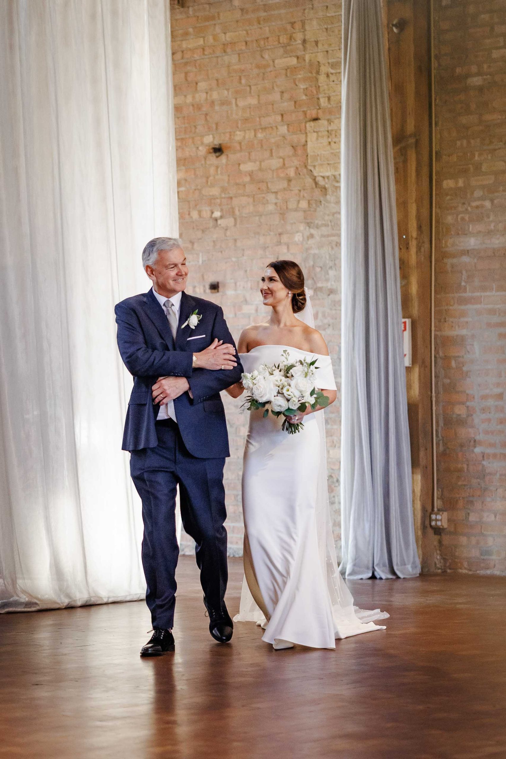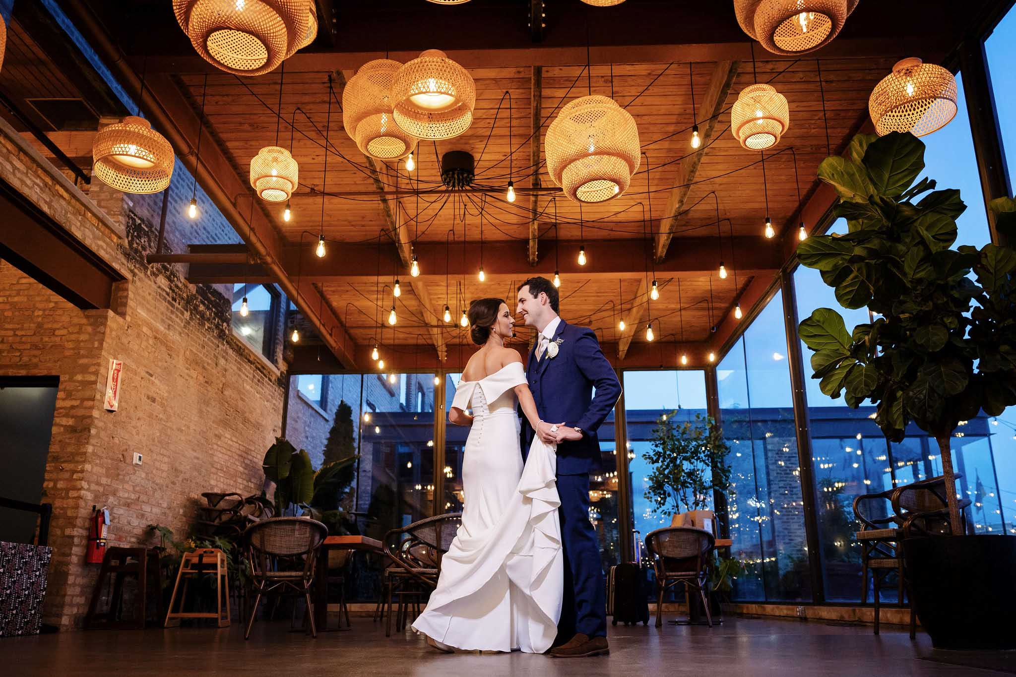 We were lucky that the rain stopped, so we had time to take a few more photos outside at the venue, right by the river. The venue is actually named after the Chicago River. It’s huge, and you can host large events with plenty of guests here. The sun came out, and we were able to take some incredible portraits of Shannon, who is truly photogenic. The dress she chose was perfect for her. The guests were arriving, and their officiant was a close friend of theirs. The flower girl won everyone’s hearts. The couple read their vows, the ceremony was over, and everything was set for the big celebration. The cocktail hour continued while the team from Rockwell on the River prepared the reception space for the guests’ arrival. We took a few more photos inside with the couple, as well as some outside. We asked them to step out during the blue hour, and we captured the stunning blue sky.The newlyweds had their first dance, accompanied by a live band. Bluewater Kings Band is excellent, and we’ve worked with them several times before. They also shared a mother-son dance and a father-daughter dance. This wedding at Rockwell on the River will always be remembered as one of the most beautiful weddings. In addition to photography, WS Photography also handled the videography, which we’ve shared as well. Their beautiful story was also featured in Brides & Weddings magazine.