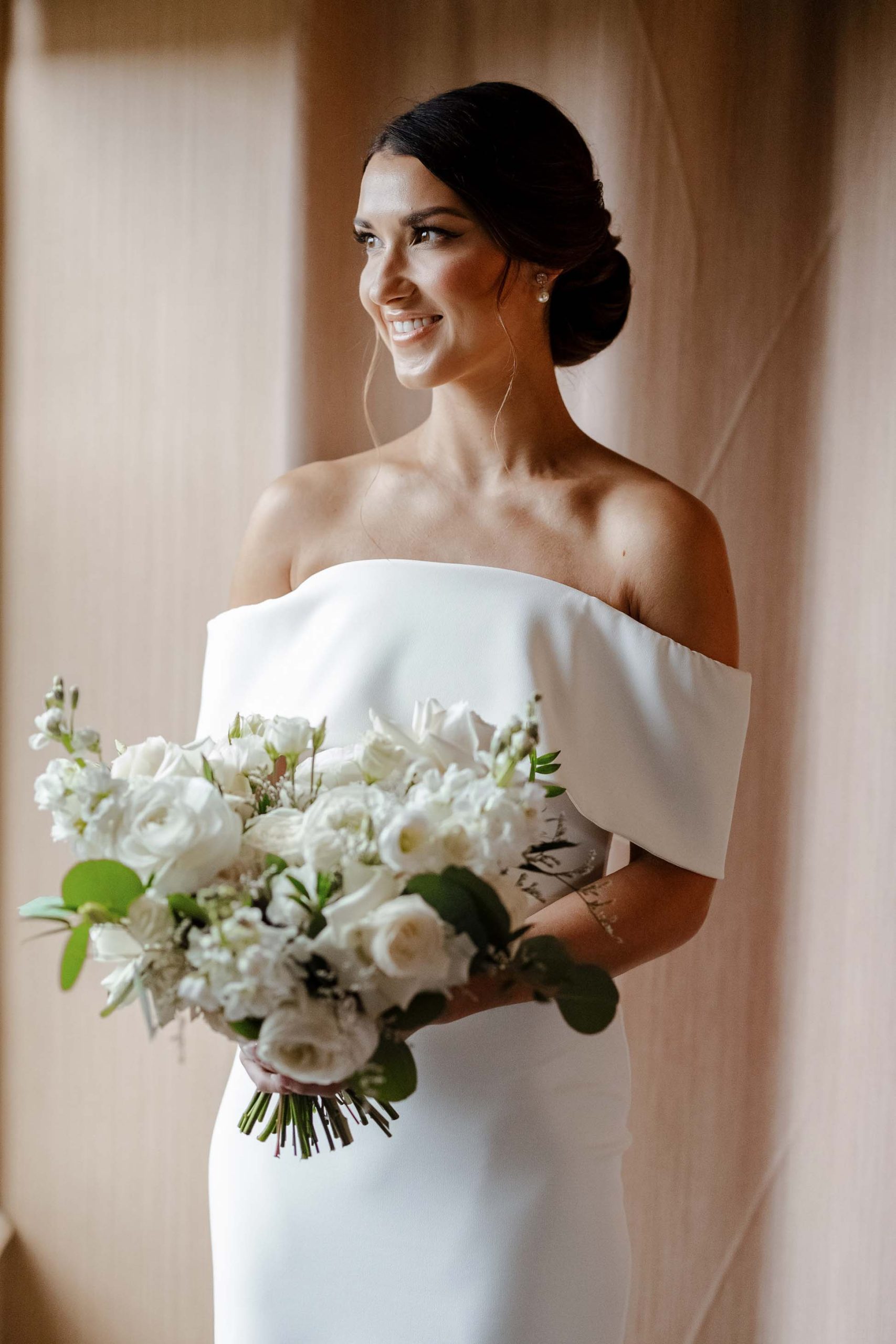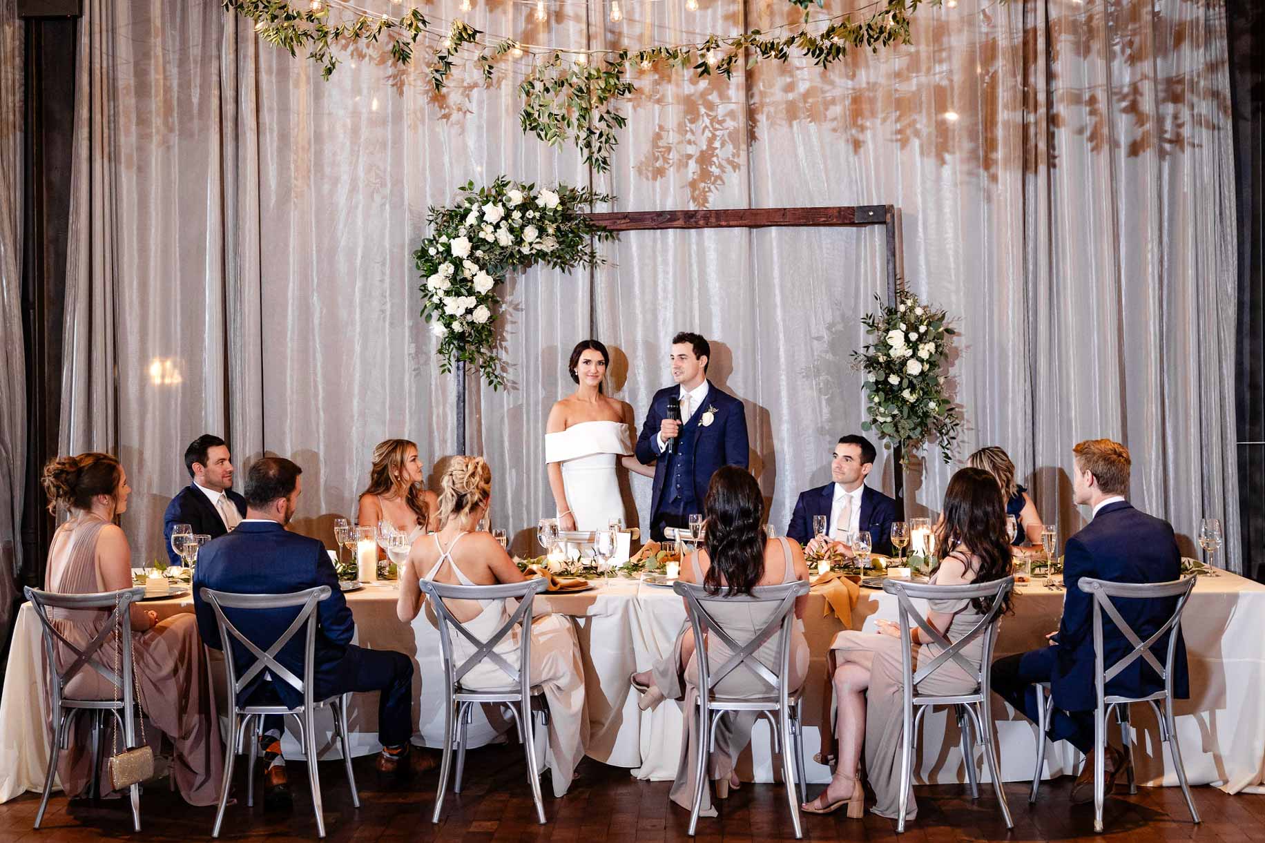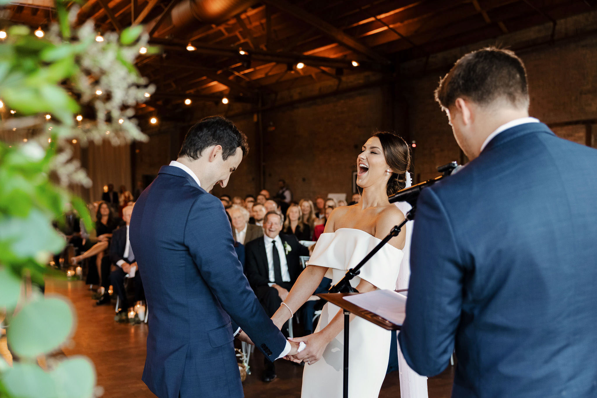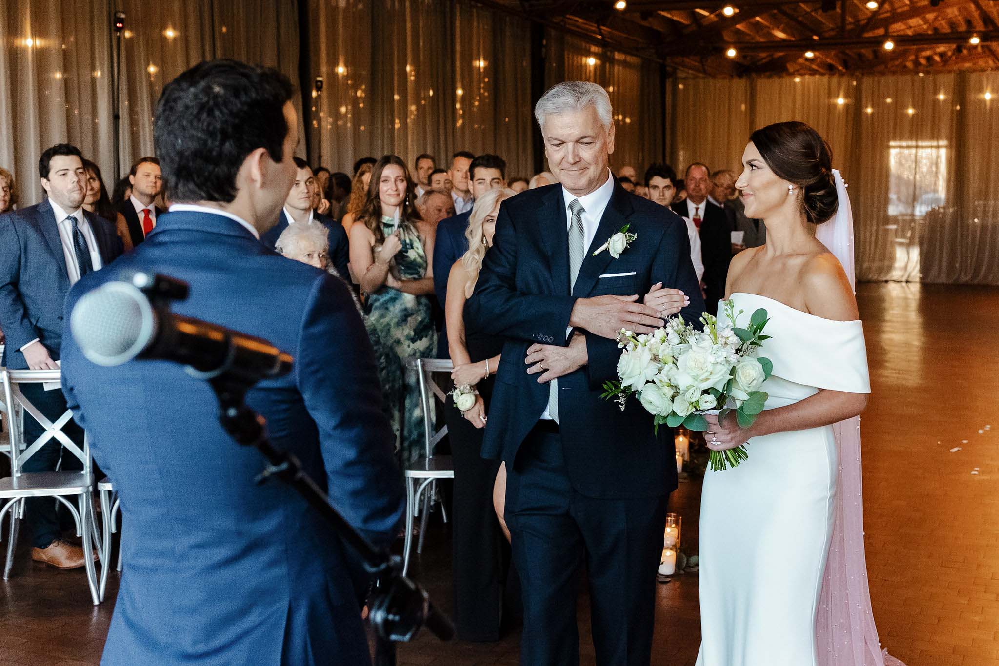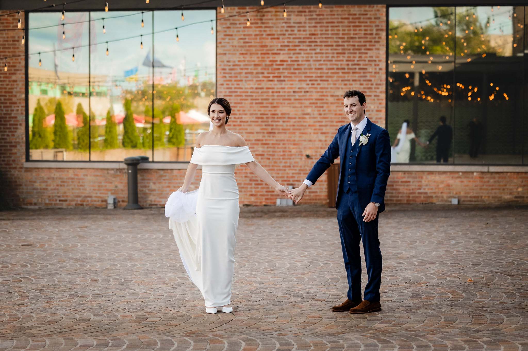 We were lucky that the rain stopped, so we had time to take a few more photos outside at the venue, right by the river. The venue is actually named after the Chicago River. It’s huge, and you can host large events with plenty of guests here. The sun came out, and we were able to take some incredible portraits of Shannon, who is truly photogenic. The dress she chose was perfect for her. The guests were arriving, and their officiant was a close friend of theirs. The flower girl won everyone’s hearts. The couple read their vows, the ceremony was over, and everything was set for the big celebration. The cocktail hour continued while the team from Rockwell on the River prepared the reception space for the guests’ arrival. We took a few more photos inside with the couple, as well as some outside. We asked them to step out during the blue hour, and we captured the stunning blue sky.The newlyweds had their first dance, accompanied by a live band. Bluewater Kings Band is excellent, and we’ve worked with them several times before. They also shared a mother-son dance and a father-daughter dance. This wedding at Rockwell on the River will always be remembered as one of the most beautiful weddings. In addition to photography, WS Photography also handled the videography, which we’ve shared as well. Their beautiful story was also featured in Brides & Weddings magazine.