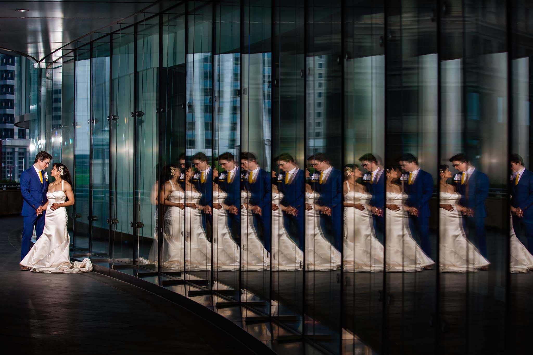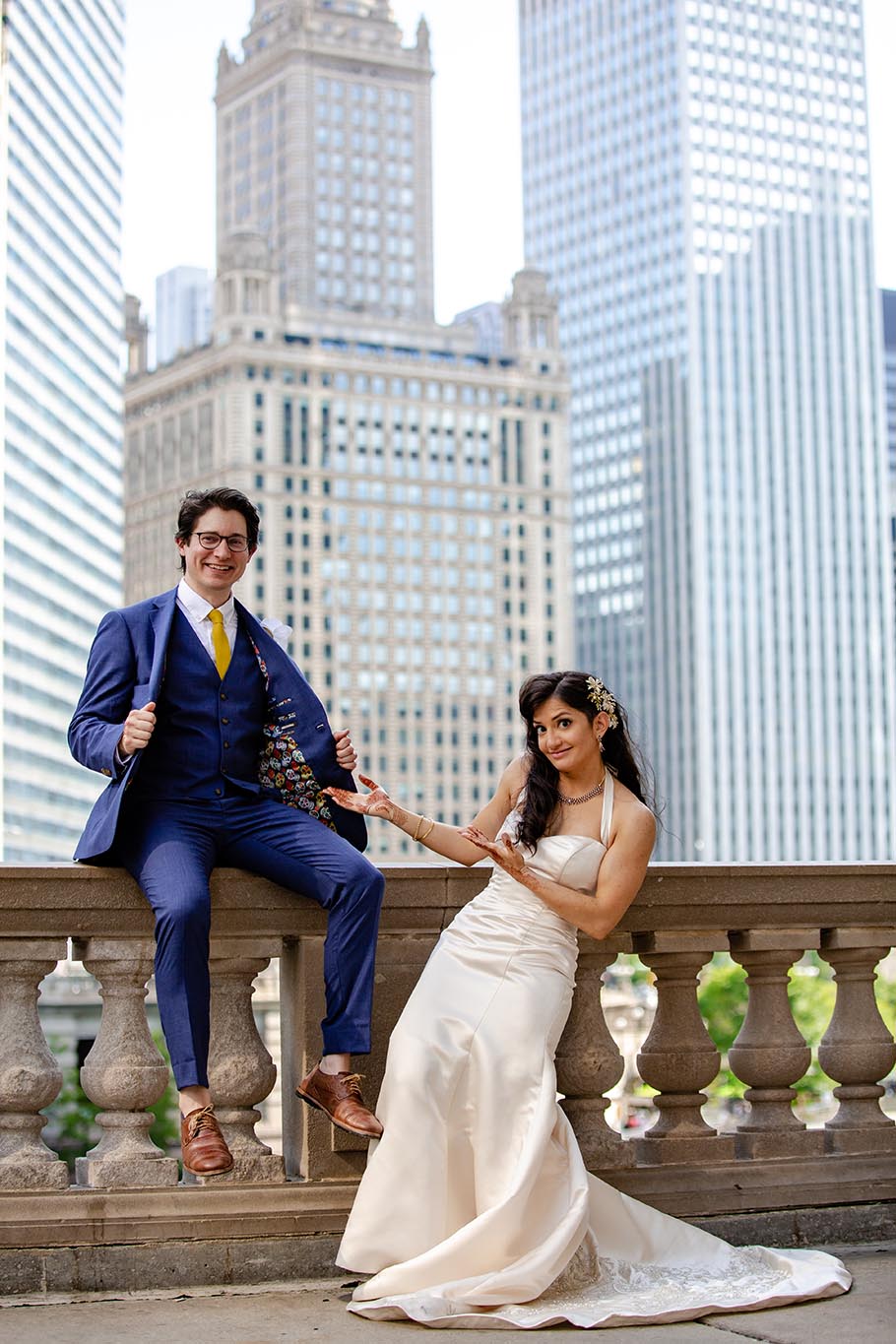 Nestled in downtown Chicago, Royal Sonesta is perfectly located that you will not have to travel too far to get amazing photographs of your wedding. Riverwalk, which is one of our most requested locations for photographs, is right across the street. Bridges, Board of Trade, Wrigley building, Chicago theater, everything is walking distance. So, we just strolled to couple of closest locations for some couple’s photos.