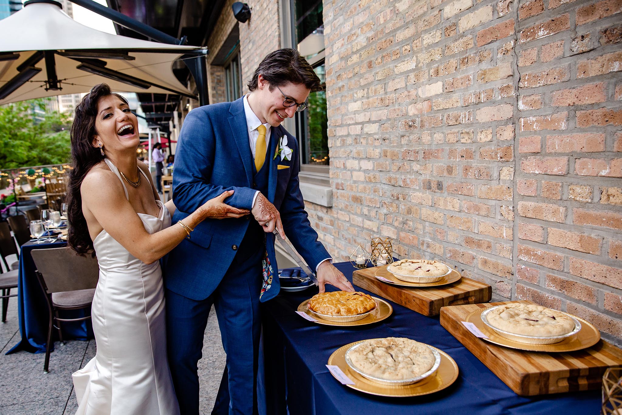 They chose Royal Sonesta for first part of the day. They were both getting ready at the hotel and they had a dreamy rooftop wedding ceremony. It was beautiful to witness their emotional exchange of wows. Views of Chicago skyline and Chicago River provided a beautiful city backdrop for the ceremony pictures.