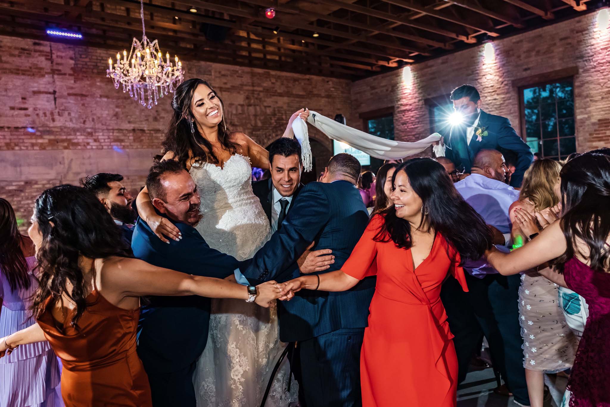 For example, La Vibora is the dance where everyone sings along holding hands. Bride and groom are sitting on their chairs that are lifted up, holding hands to create a bridge. Meanwhile, all the participants are creating a snake that has to go through a bridge.