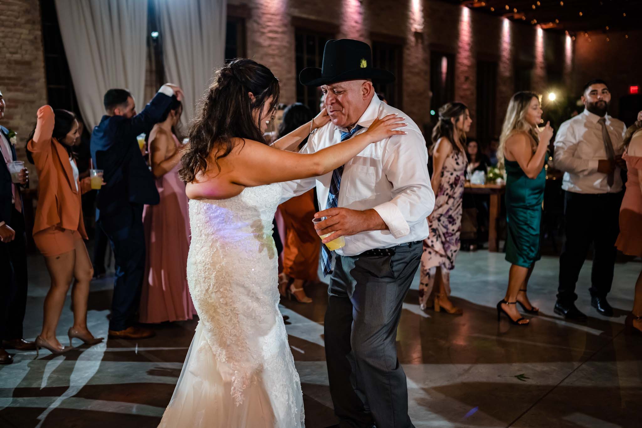 El Baile del Mandilon or The domesticated husband dance 🙂 This is a dance where the roles are switched. This dance essentially is making fun of how the “dominant husband” is now the domesticated partner in the relationship. The dance is started by giving the bride a belt and a cowboy hat and the groom an apron and broom. They dance around the floor as the bride gestures at “whipping” the groom and the groom dances around sweeping the floor.