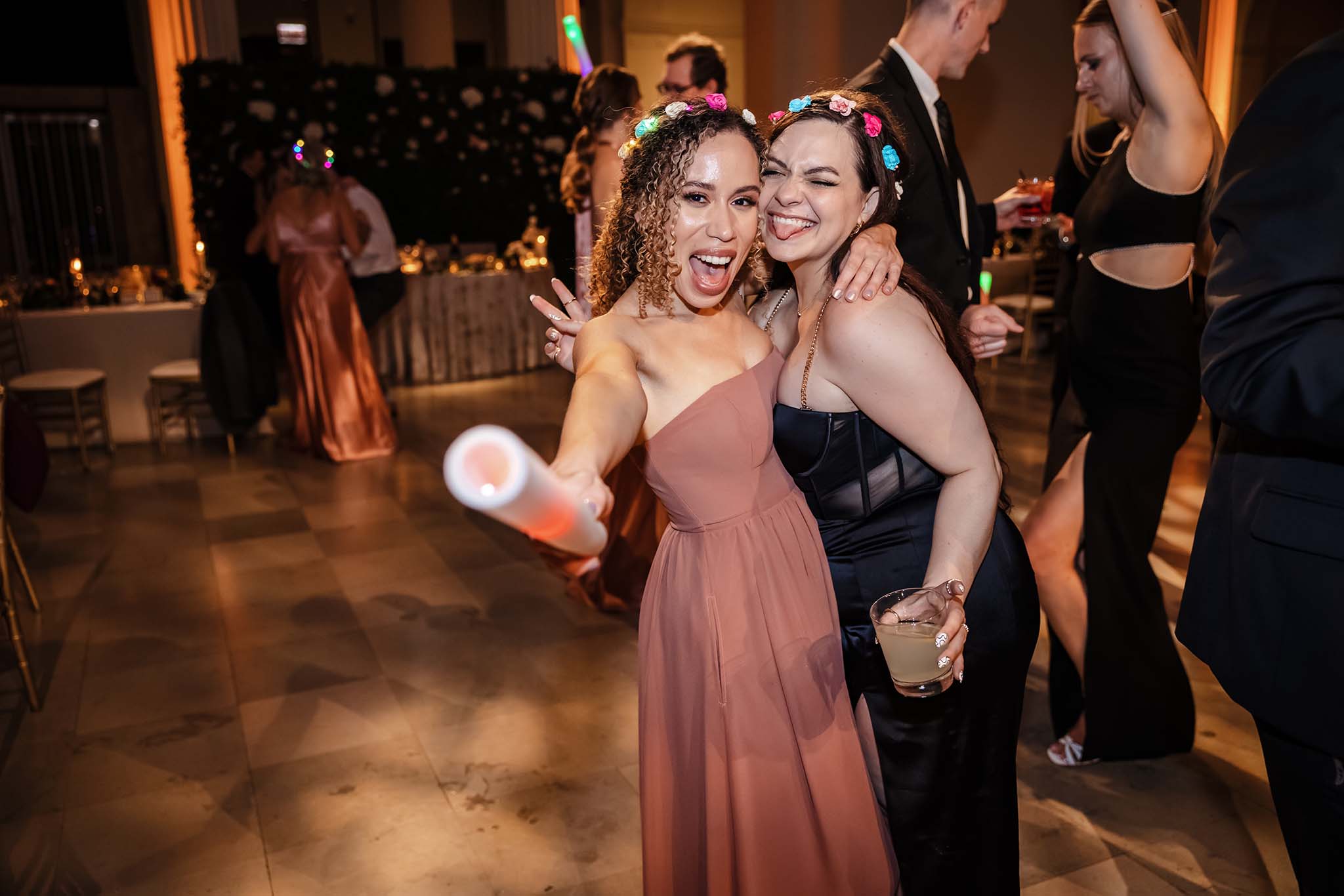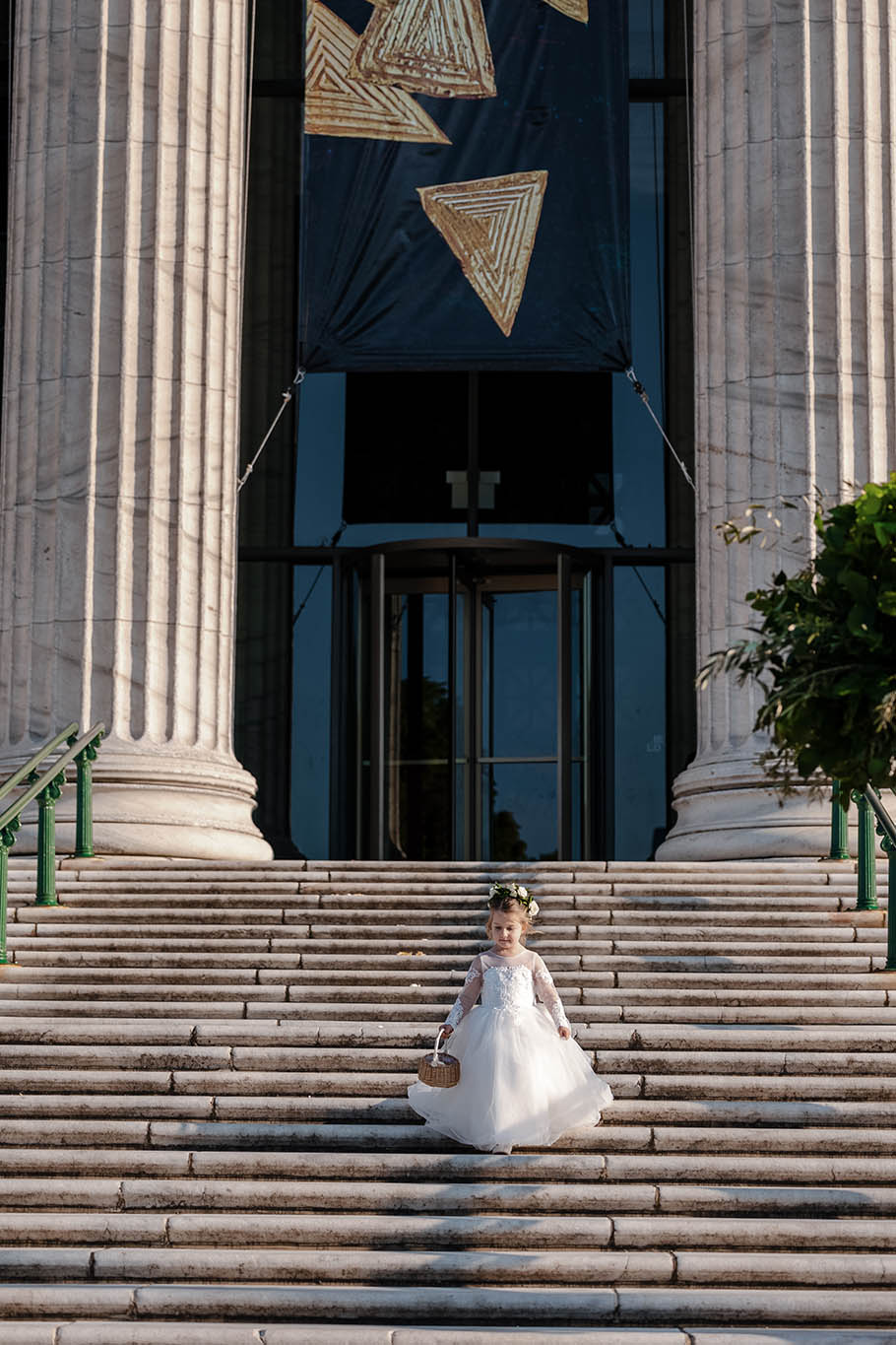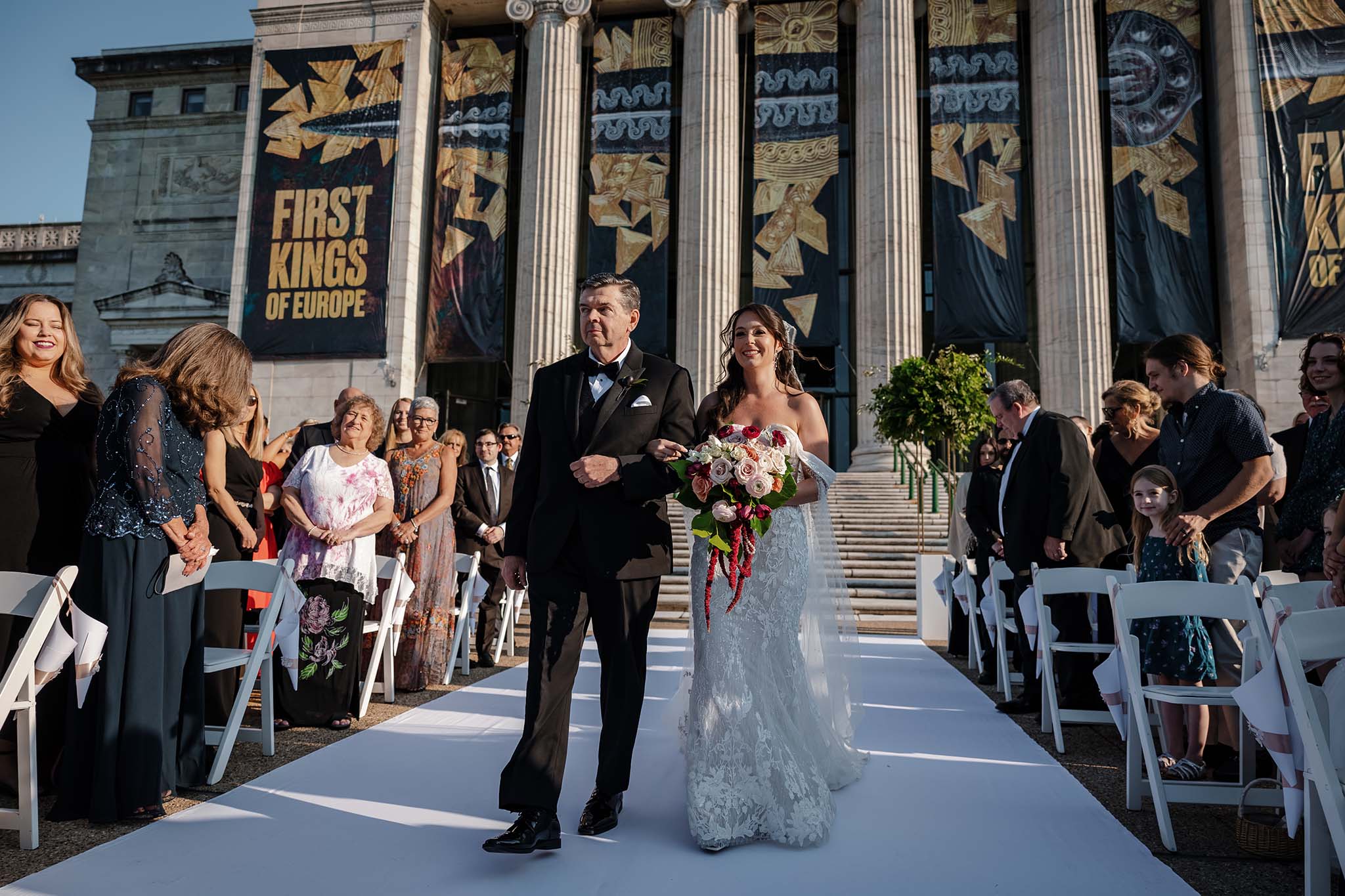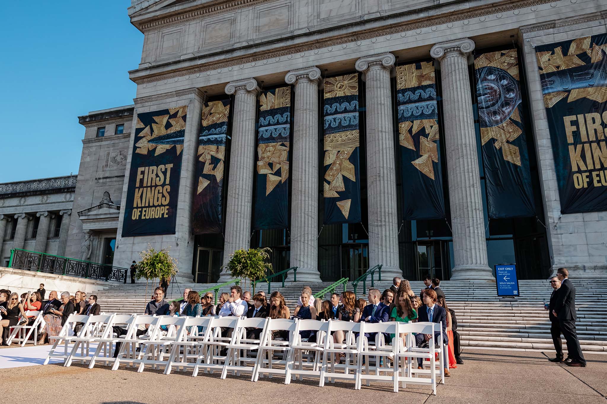 Weddings and receptions at the Field Museum are always scheduled after the museum closes at 5 PM. We arrived on time and had the opportunity to take photos inside the museum. The couple are huge dinosaur lovers and specifically wanted some photos with the wedding party in the dinosaur exhibit area. It was such a fun and unique experience—we truly enjoyed it and were excited to shoot in that setting. The ceremony was set up outside at the North Entrance, beneath the grand staircase, with a stunning view of the city in the background. Everything looked absolutely phenomenal. A live string ensemble added to the atmosphere, making it even more magical. The descent of the wedding party and the bride down the steps turned out perfectly in our photos. Field Museum is truly something special when it comes to weddings. After the ceremony, guests enjoyed cocktail hour while we took a few more sunset portraits of the couple. The reception space—framed by mammoths in the background and prehistoric birds suspended from the ceiling—is absolutely breathtaking. If you’re looking for a unique and unforgettable wedding experience, this is the place. After dinner, the celebration continued with a lively party. The atmosphere was filled with joy and energy—so many happy, smiling faces. In a venue like this, it’s almost impossible to feel anything but excited. In one word, we were blown away by this wedding.