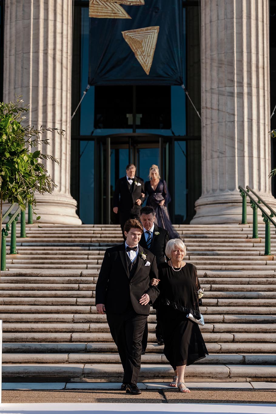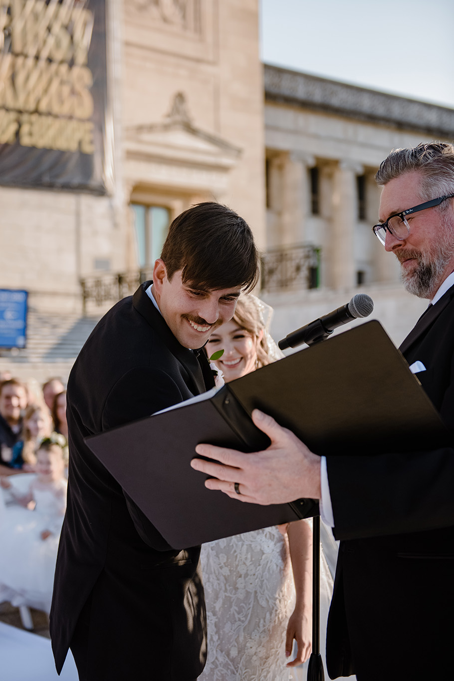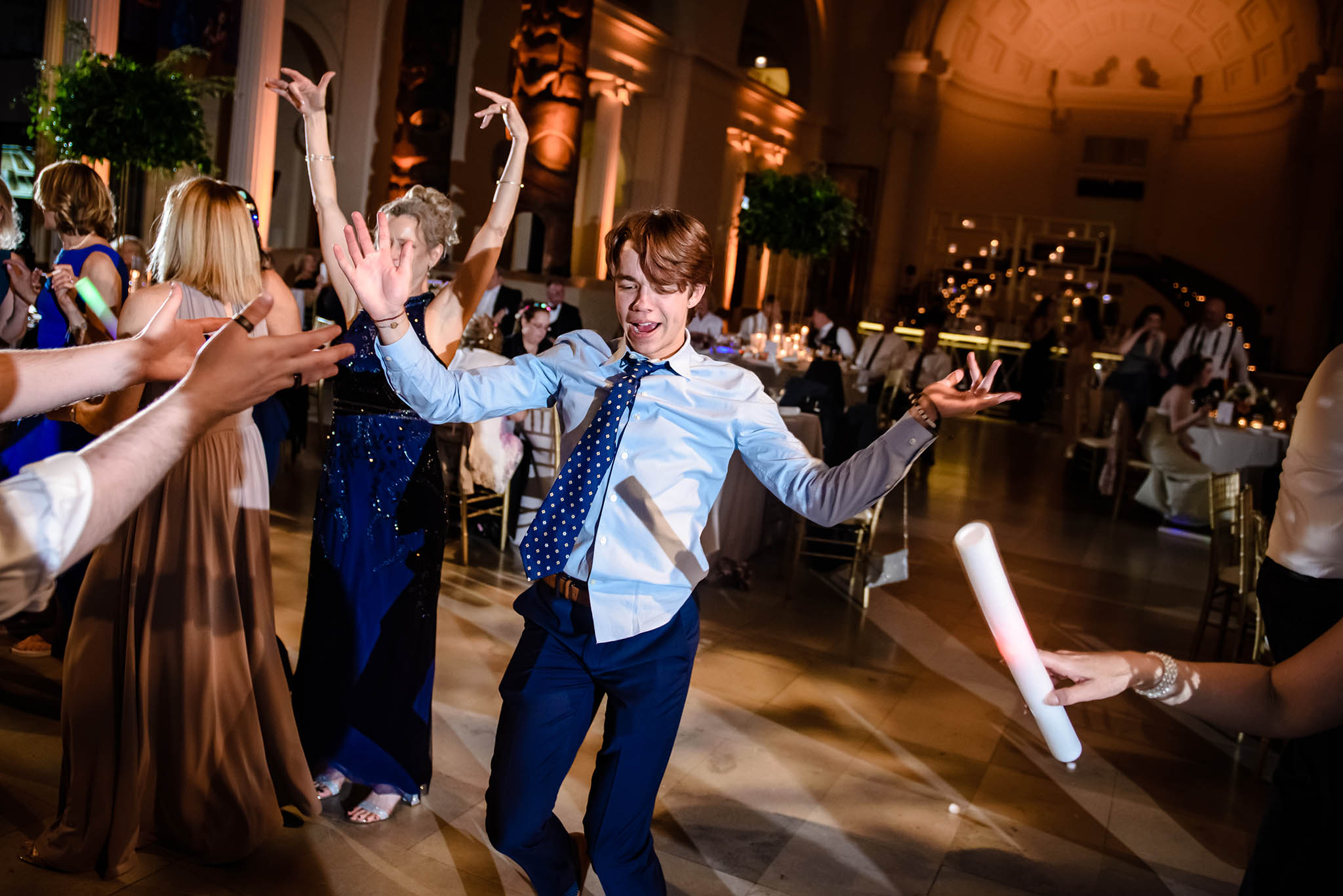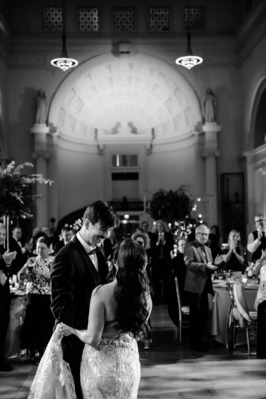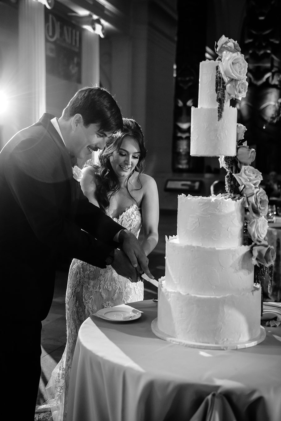 Weddings and receptions at the Field Museum are always scheduled after the museum closes at 5 PM. We arrived on time and had the opportunity to take photos inside the museum. The couple are huge dinosaur lovers and specifically wanted some photos with the wedding party in the dinosaur exhibit area. It was such a fun and unique experience—we truly enjoyed it and were excited to shoot in that setting. The ceremony was set up outside at the North Entrance, beneath the grand staircase, with a stunning view of the city in the background. Everything looked absolutely phenomenal. A live string ensemble added to the atmosphere, making it even more magical. The descent of the wedding party and the bride down the steps turned out perfectly in our photos. Field Museum is truly something special when it comes to weddings. After the ceremony, guests enjoyed cocktail hour while we took a few more sunset portraits of the couple. The reception space—framed by mammoths in the background and prehistoric birds suspended from the ceiling—is absolutely breathtaking. If you’re looking for a unique and unforgettable wedding experience, this is the place. After dinner, the celebration continued with a lively party. The atmosphere was filled with joy and energy—so many happy, smiling faces. In a venue like this, it’s almost impossible to feel anything but excited. In one word, we were blown away by this wedding.