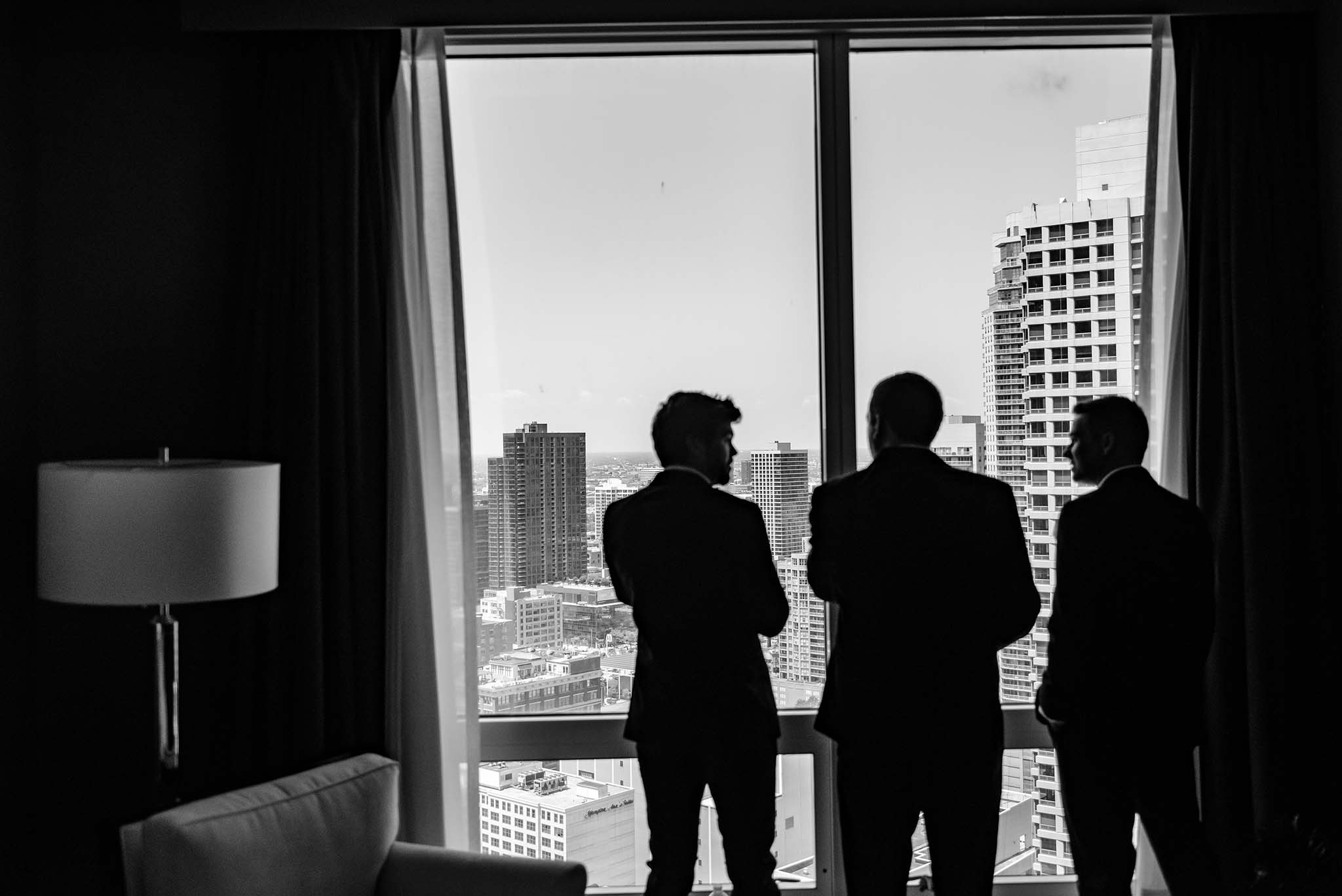 A wedding at The Field Museum exudes elegance and sophistication. The venue’s timeless charm and refined atmosphere make it an ideal choice for couples seeking a classic and sophisticated wedding day. From the stunning reception halls to the intimate ceremony spaces, every corner of the museum exudes a sense of grandeur, providing an exquisite backdrop for capturing the elegance of your special day. Chelsea and Bryce made the right choice for a beautiful wedding that we will remember forever, and I hope you too, looking at these photos of theirs.We started early in the morning. The preparations took place at the Trump Hotel on the Chicago Riverwalk. Chelsea was in a stunning, spacious suite with floor-to-ceiling windows offering an incredible view of downtown Chicago and the river. All the bridesmaids were there, and we captured some amazing getting ready photos.T he groom and groomsmen got ready at the Congress Plaza Hotel.