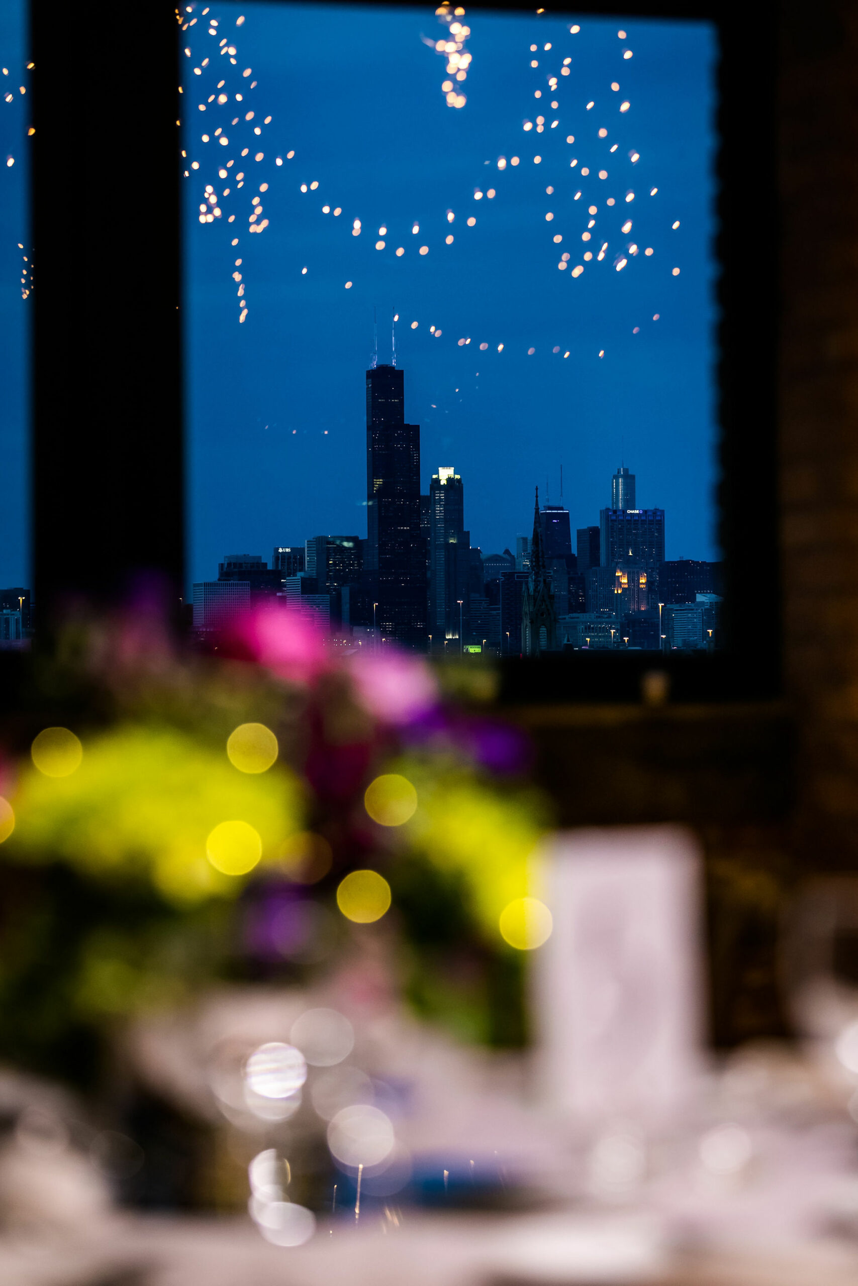 The Bridgeport Art Center offers two stunning event spaces, perfect for any occasion. The Skyline Loft, located on the top floor, seats 600 guests and can accommodate up to 900 for receptions, offering breathtaking views of the Chicago skyline. The Sculpture Garden, situated on the ground floor, seats 550 guests and can host up to 900 for receptions, providing a beautiful indoor/outdoor setting with gorgeous lighting and dramatic drapery.